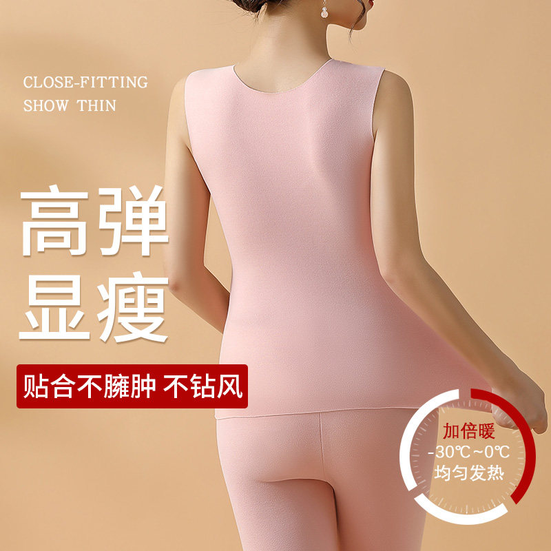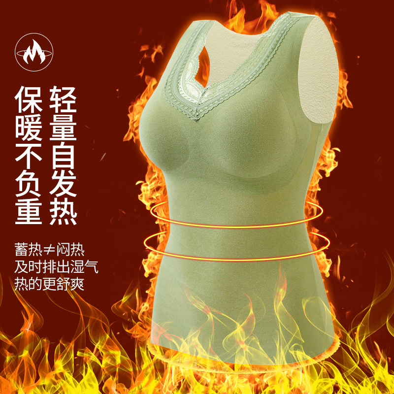 Duvet Warm Vest Woman Thicken Plus Suede Spontaneous Hot Winter Integrated Suede Underwear With Chest Cushion Winter Beat Undershirt V Collar