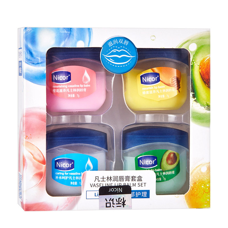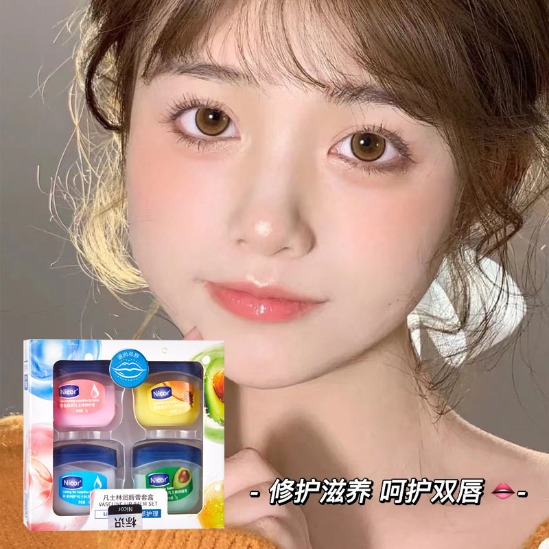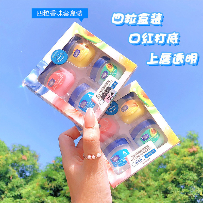 (12 8 four boxes) Vaseline transparent lip balm moisturizing moisturizing moisturizing desalination repairing anti-drying and peeling dead skin