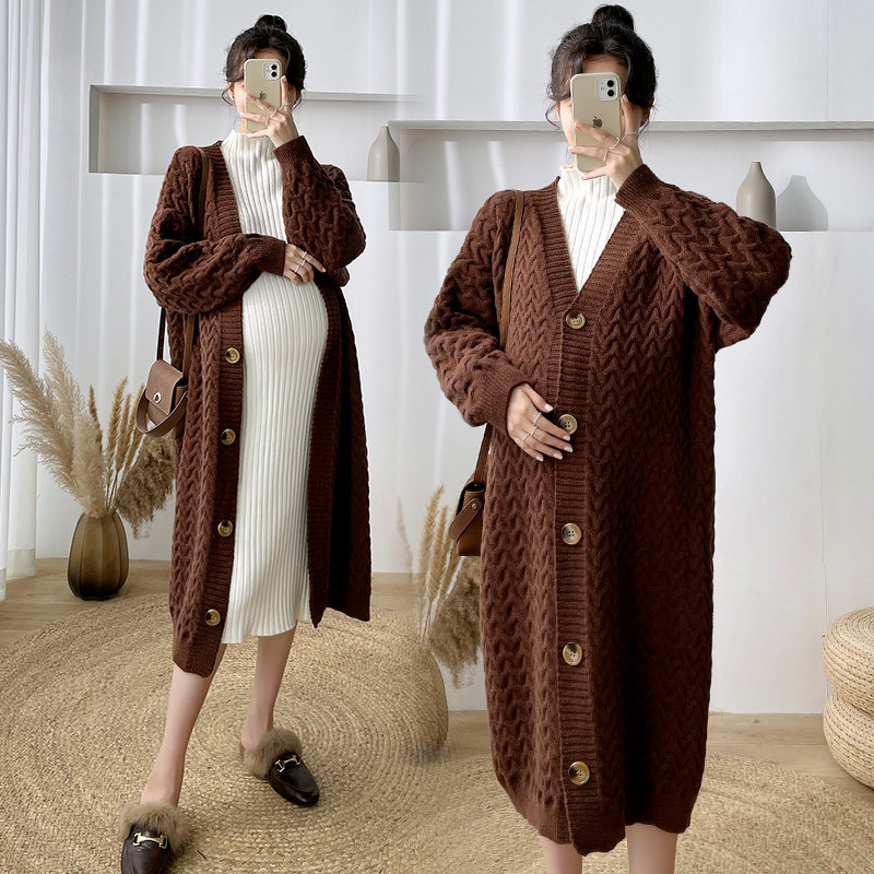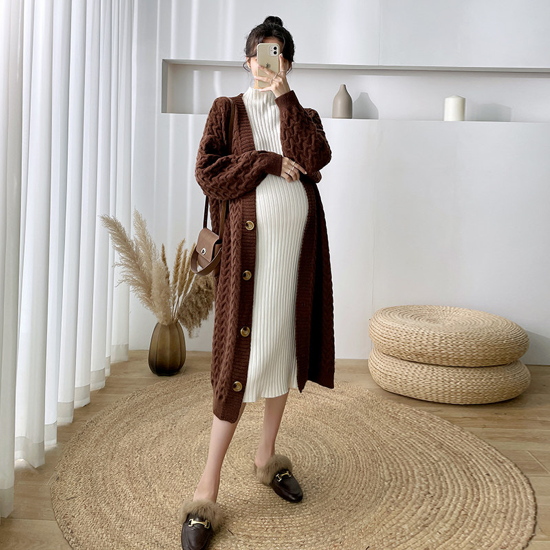 Japanese pregnant woman coat autumn and winter outside wearing two sets of casual knit long sleeve blouses loose large size pregnant woman foreign dress