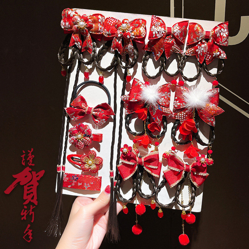 1# floral bow wig 2-piece set 2# petal bow wig 2-piece set 3# red bow wig 2-piece set 4# red bow 4-piece set 5# red sunflower 4-piece set