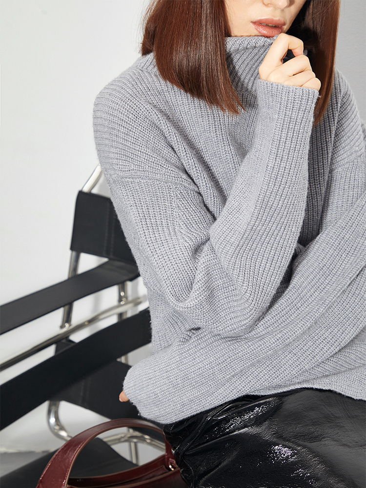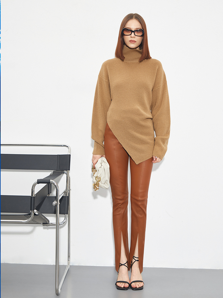 Boss Z urban modern shaping sweater female volcano shape oblique design irregular imported woolen sweater female