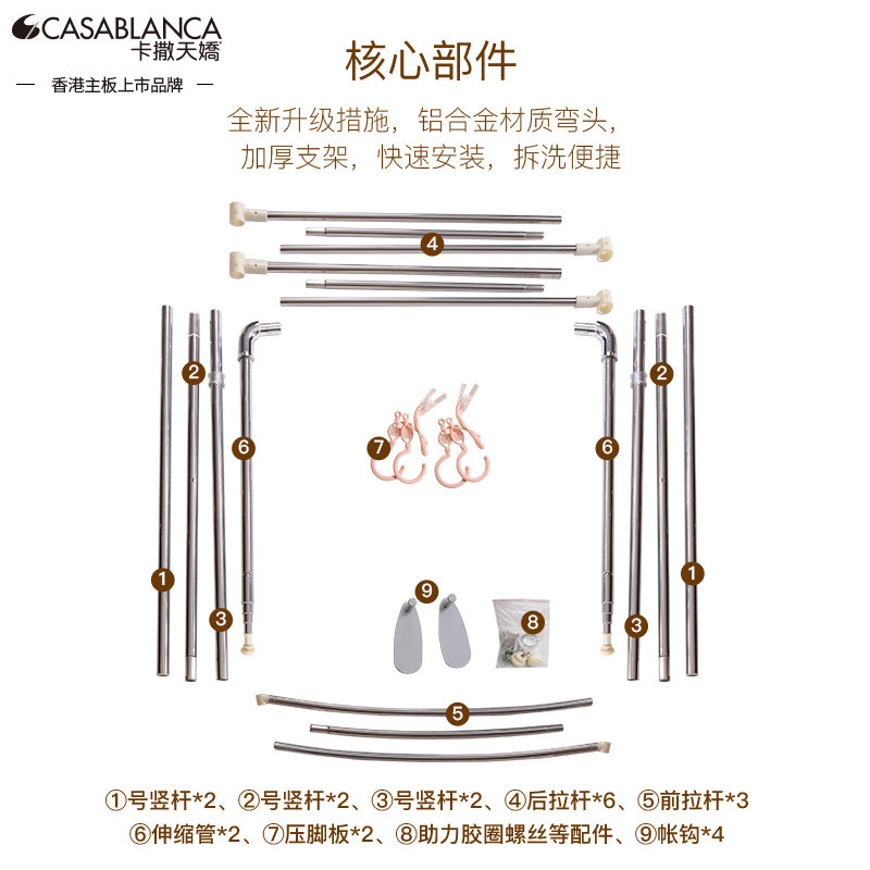 CASABLANCA Casian cuddling mosquito nets U-seat ground retractable stainless steel thickened bracket encryption three doors