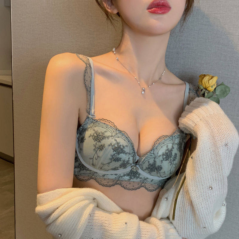 Japanese PARFAGE lace underwear women's sexy beautiful back no steel ring bra small chest gathered anti-sagging underwear set
