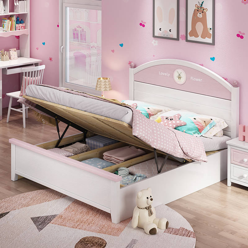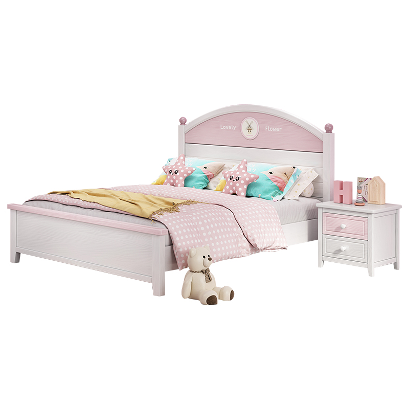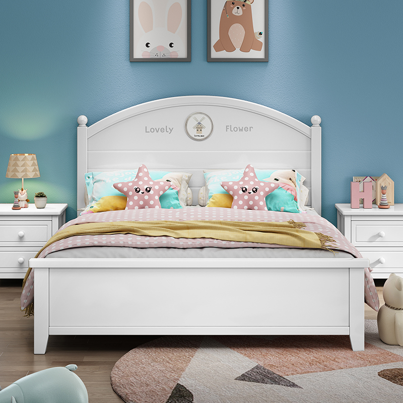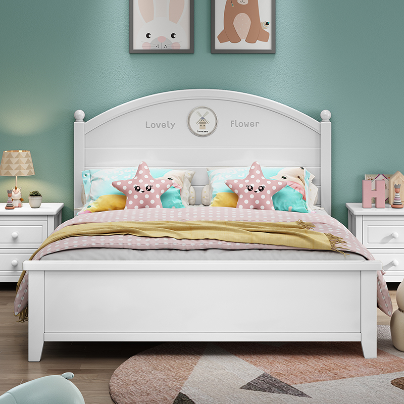 Solid wood bed 1 5M modern minimalist children's bed White 1 2 single bed 1 8 double master bedroom princess bed 1 35m