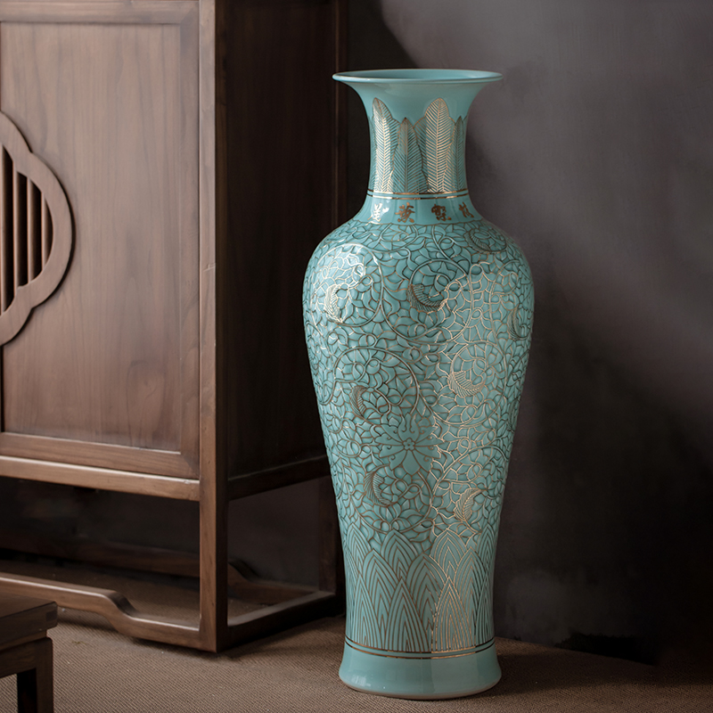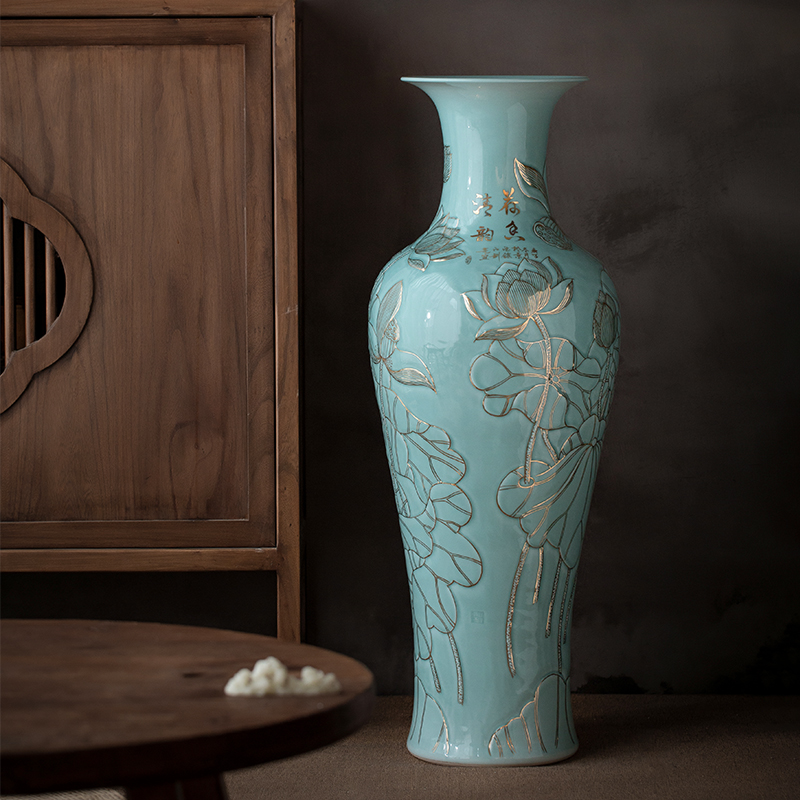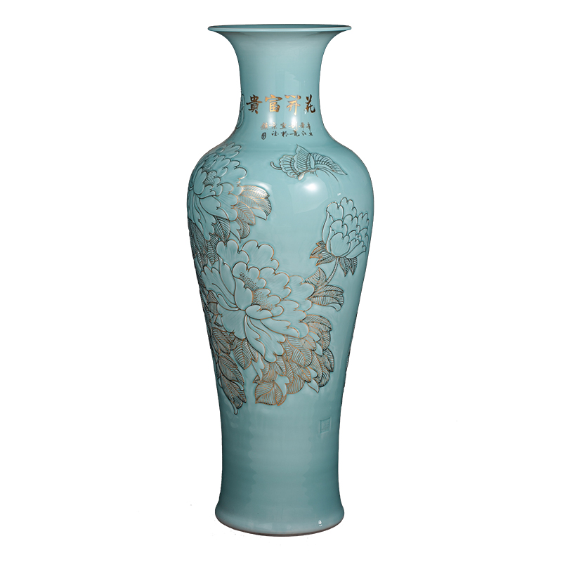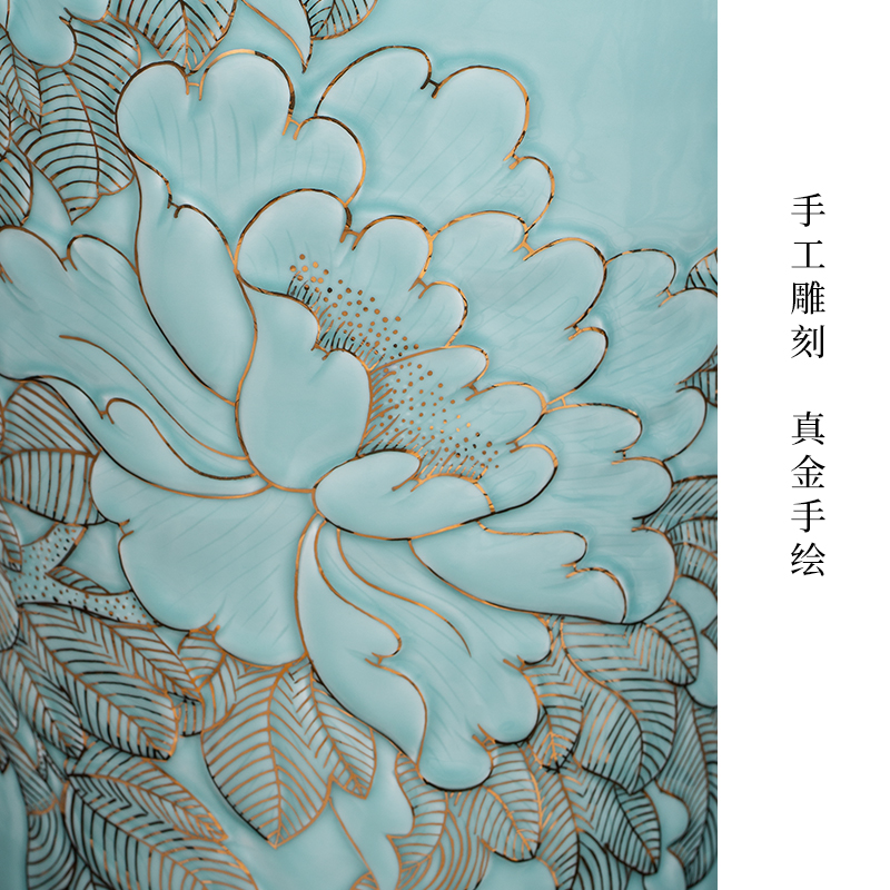 Jingdezhen Ceramic Hand-painted Large Vase Light Extravagant High-end Luxury luxury Extravagant Porcelain Pendulum with Painted Golden Peony in the Living Room