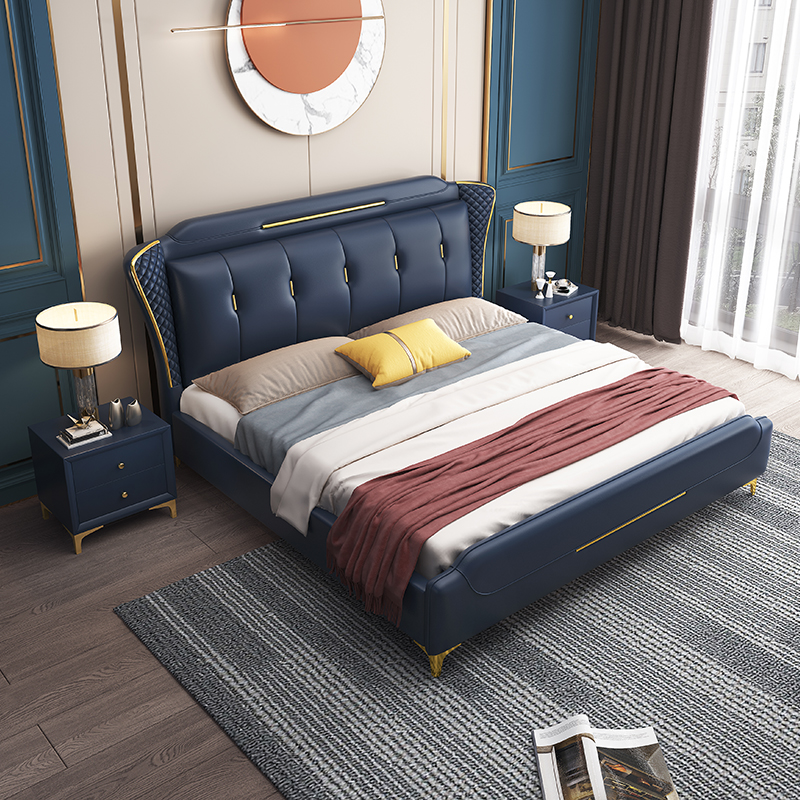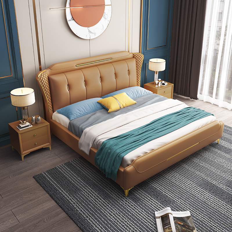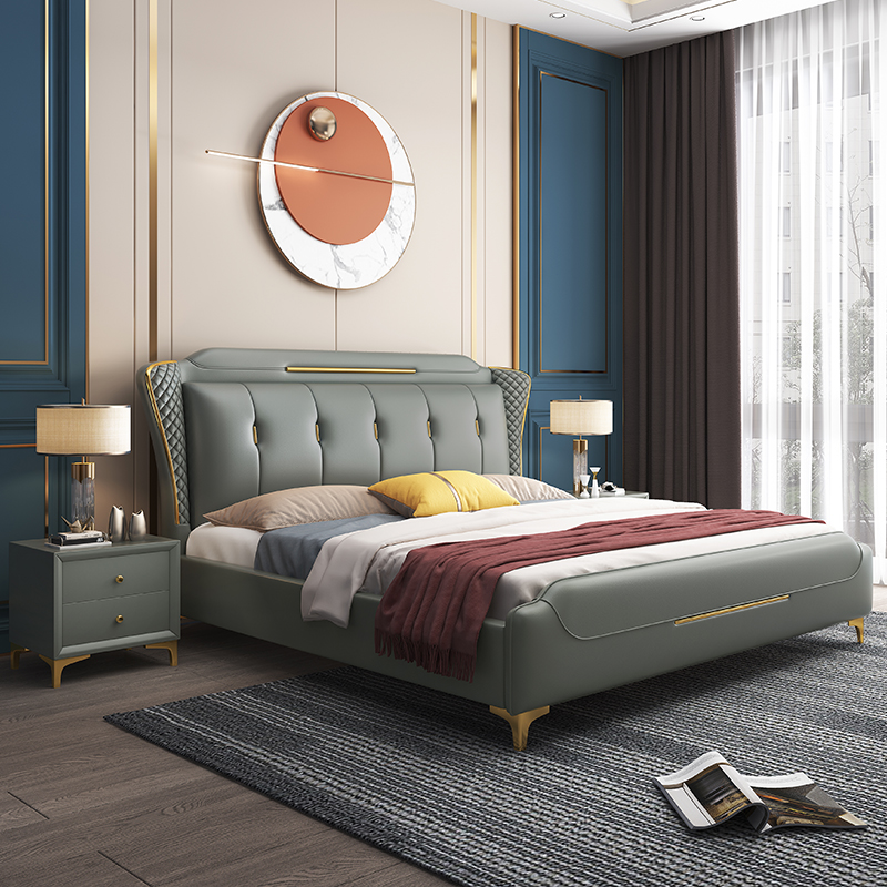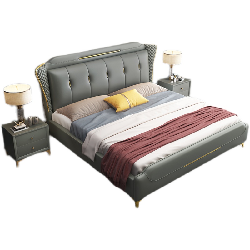 Leather bed 1 8 m 1 5 rear modern minimalist light and luxurious double containing bed master bedroom net red soft on large bed European and American style