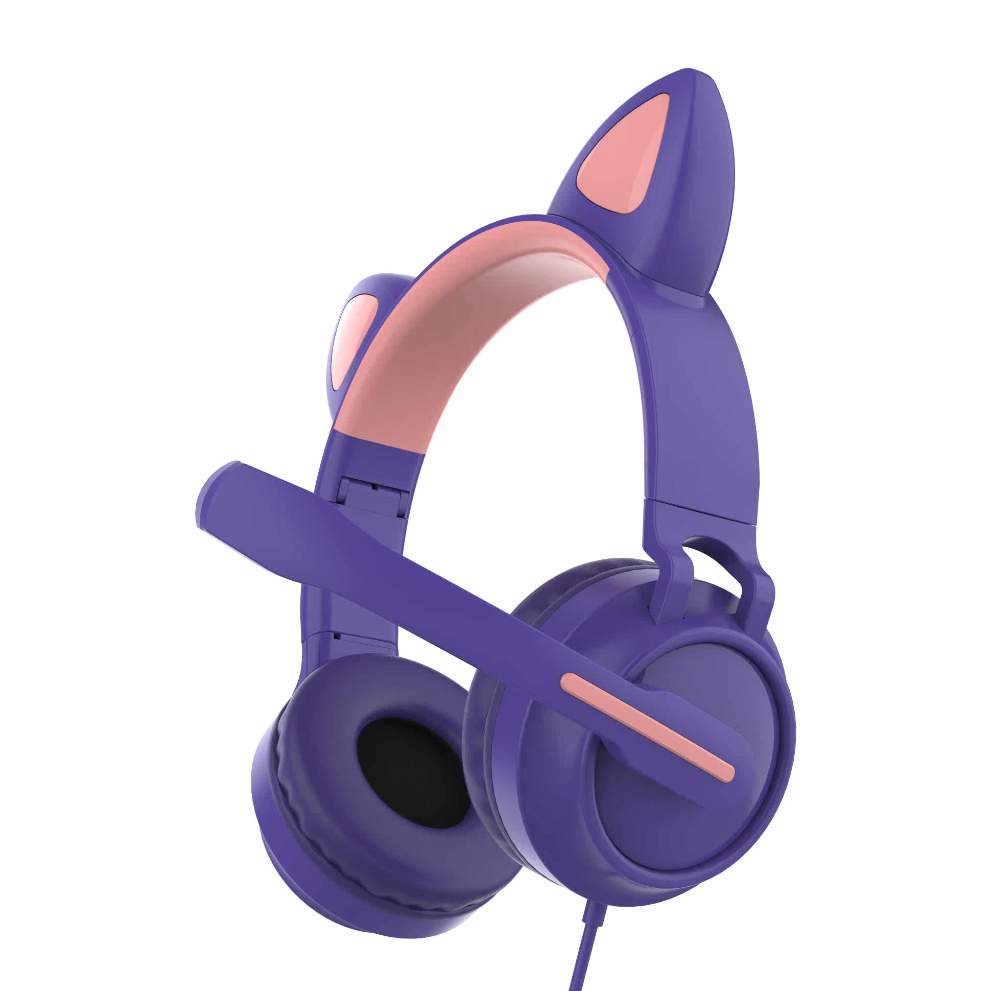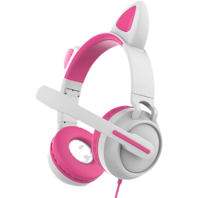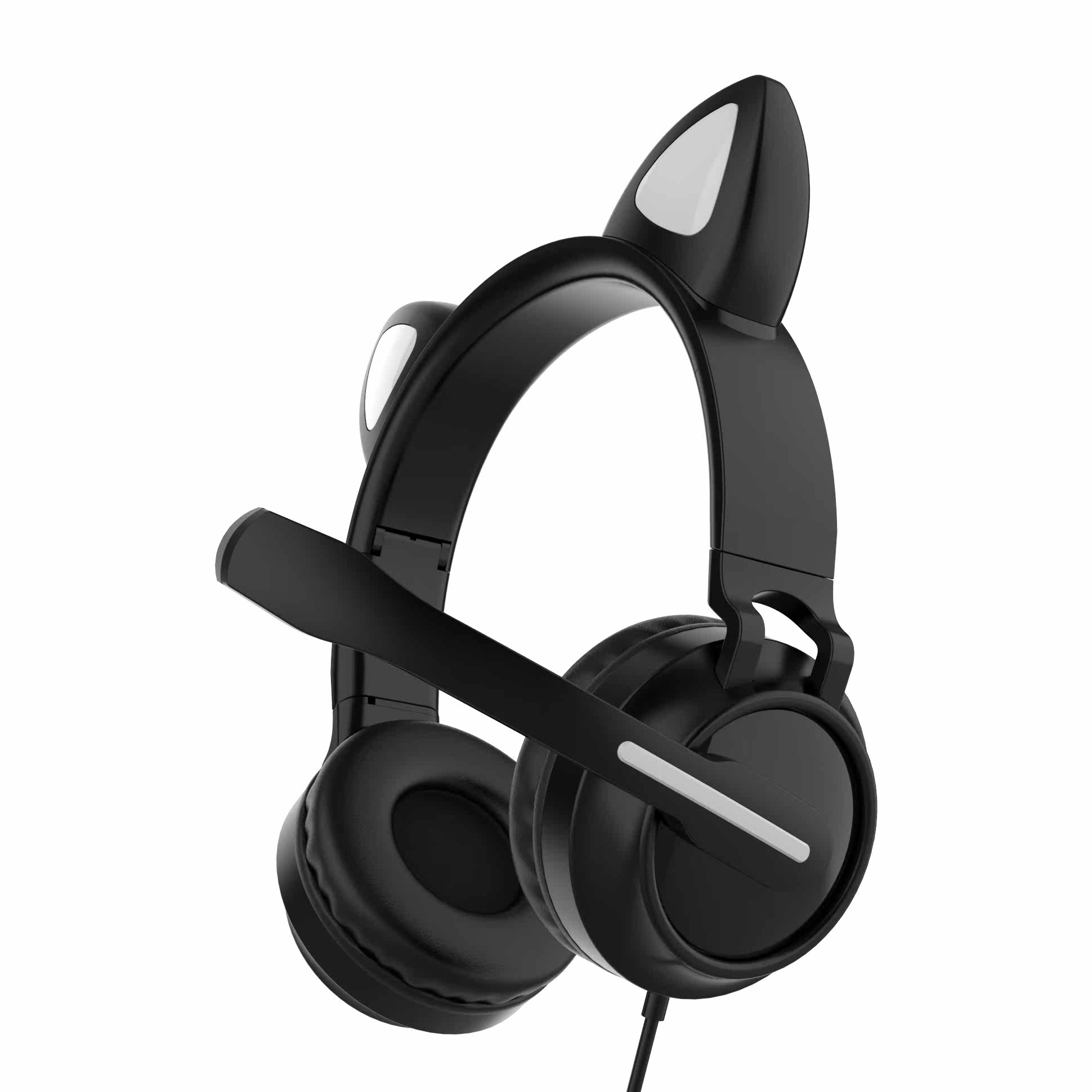 Desktop computer live pink cat headphones cute girls head-mounted cat ear headphones wired luminous headset