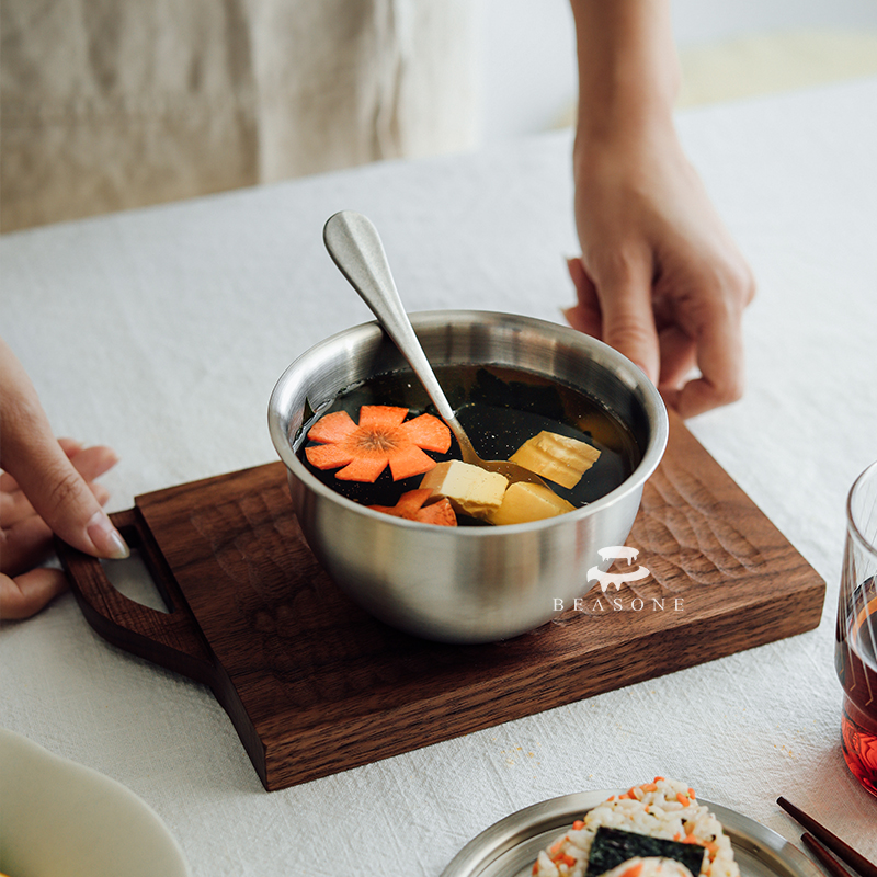 AMAGOUR Japanese-style 304 stainless steel matte household with lid baby small rice bowl fruit baking dipping bowl