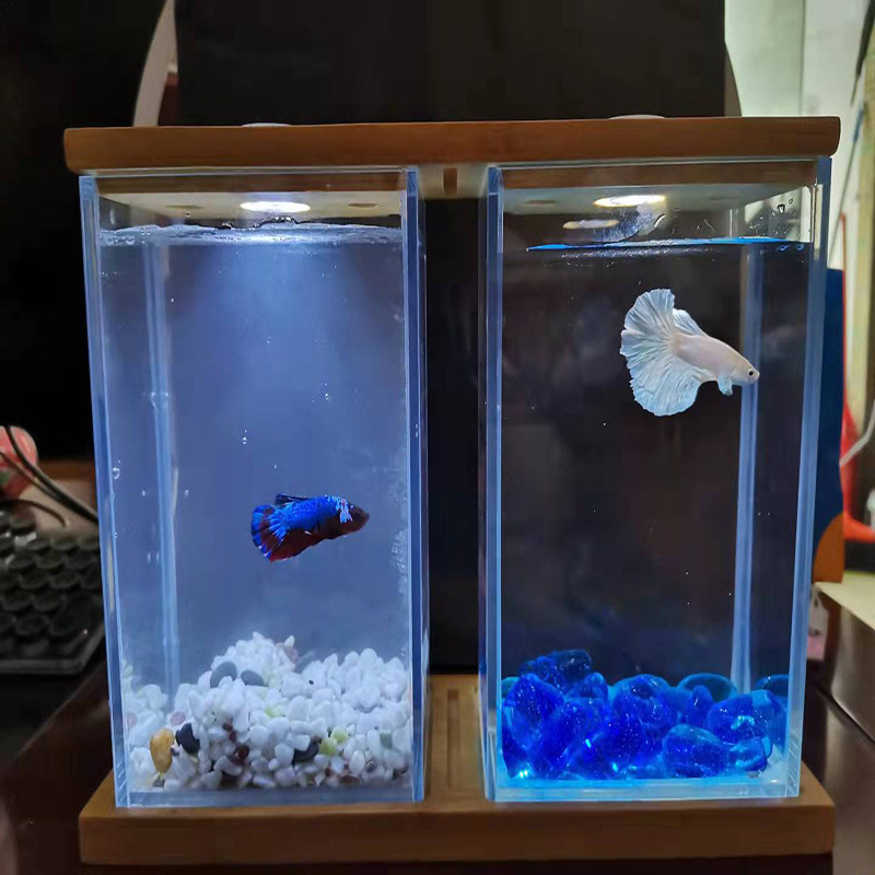 Creative Office Desktop Small Fish Tank Thai Bucket Fish Tank Super White Glass Double Cylinder Microscape Tropical Fish Tank Special Fish Tank