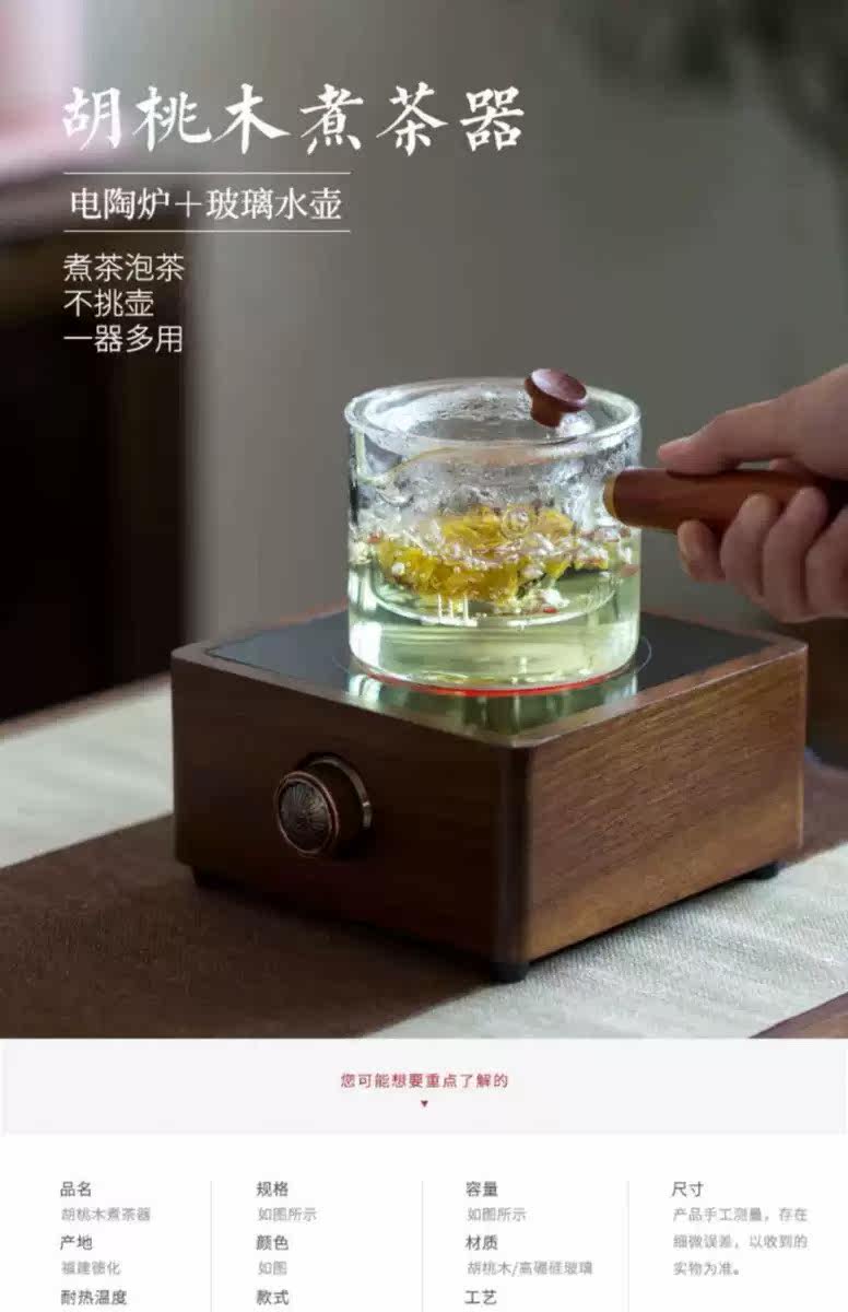 Lebohu Peach Wood Tea Oven Black Crystal Stove Cooking Tea Instrumental Home Small Induction Cookers Cooking Teapot Electric Hot Stove Glass Muted