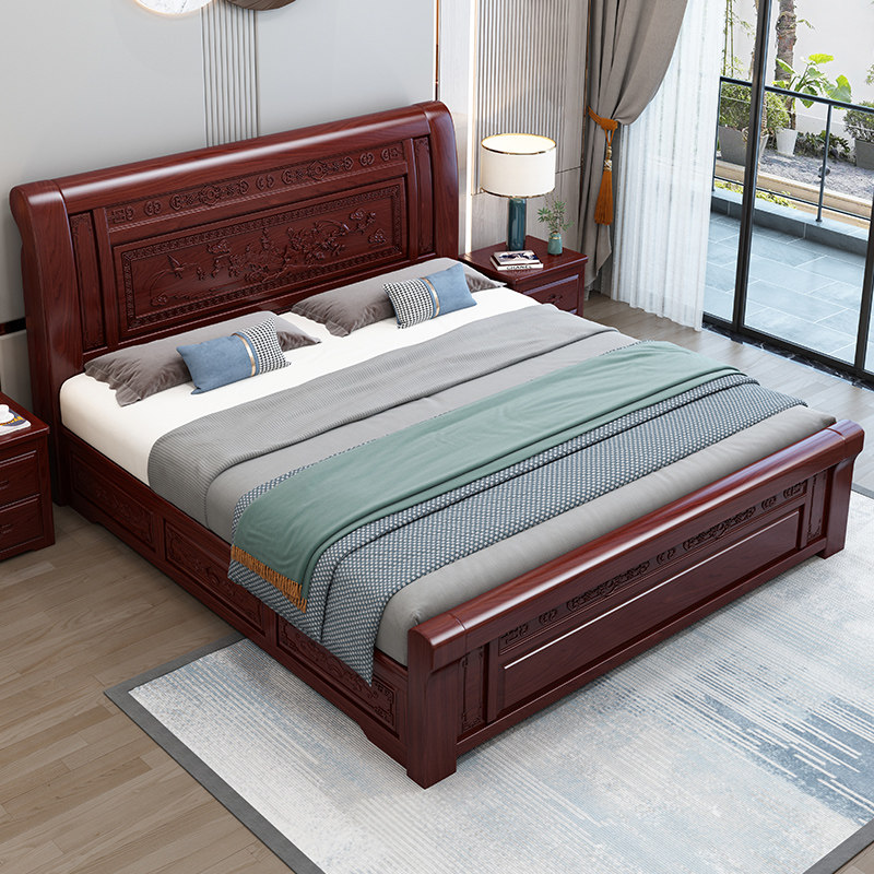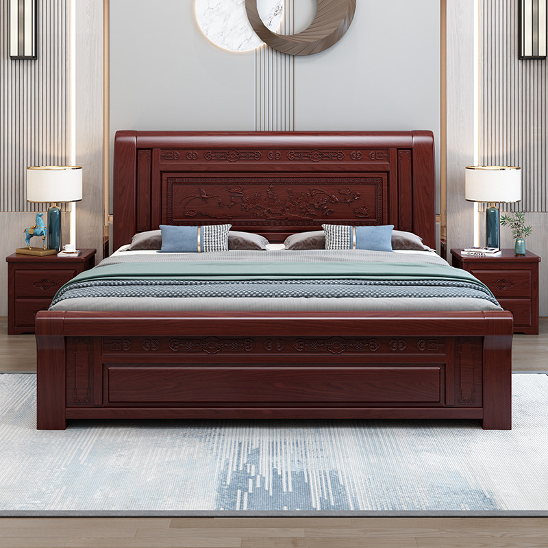 New Chinese style solid wood bed rosewood sour branch color mahogany bed master bedroom double bed factory direct sales storage antique furniture