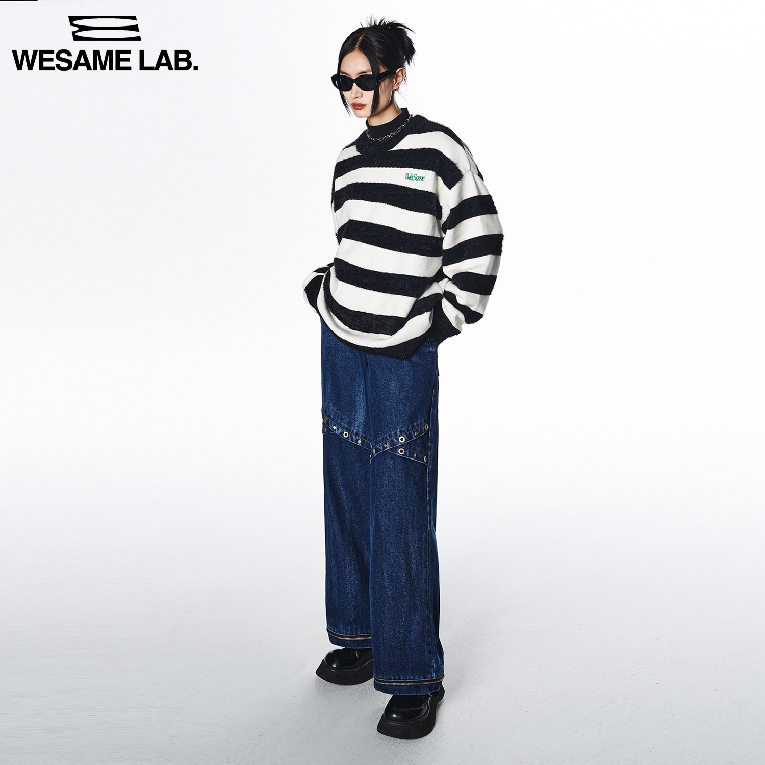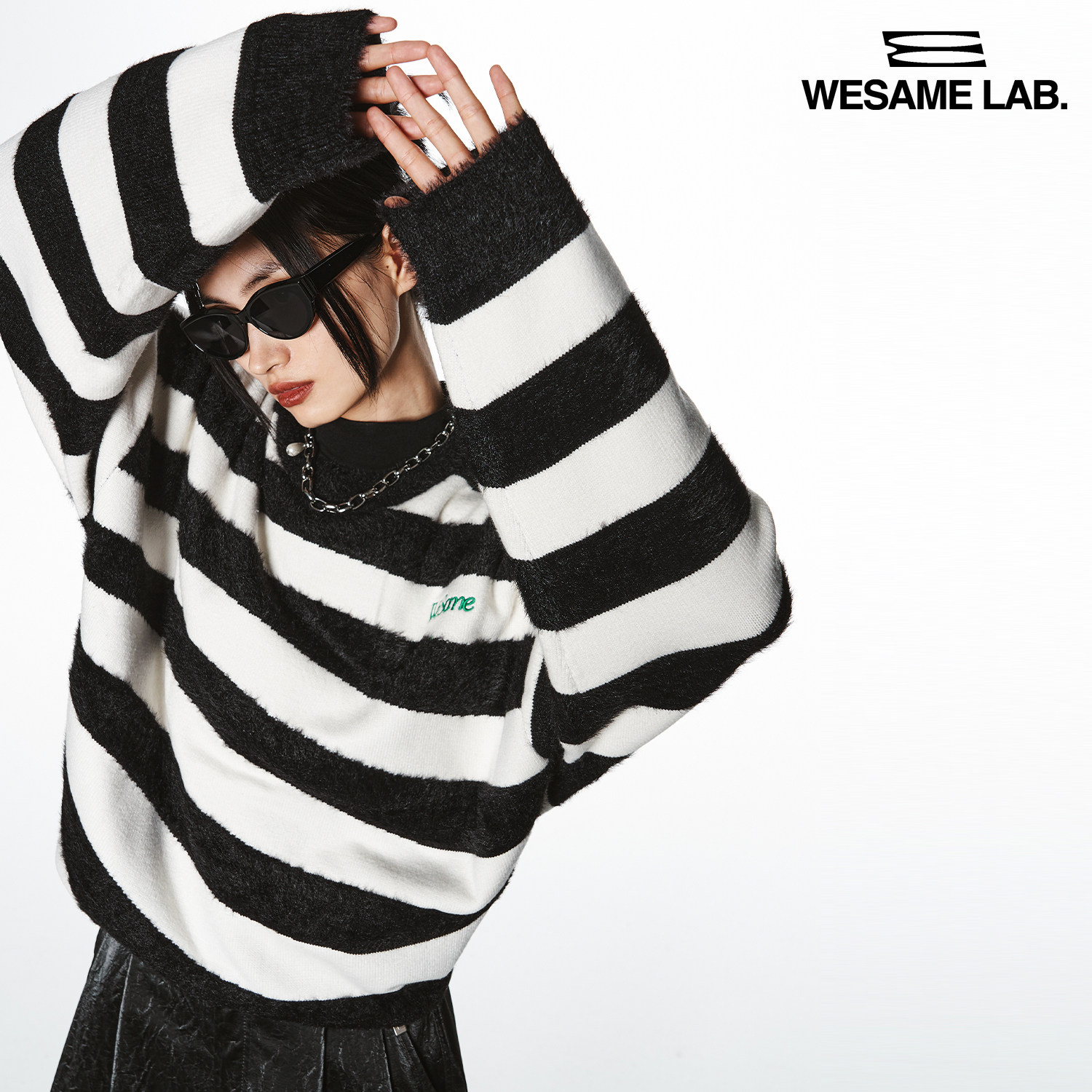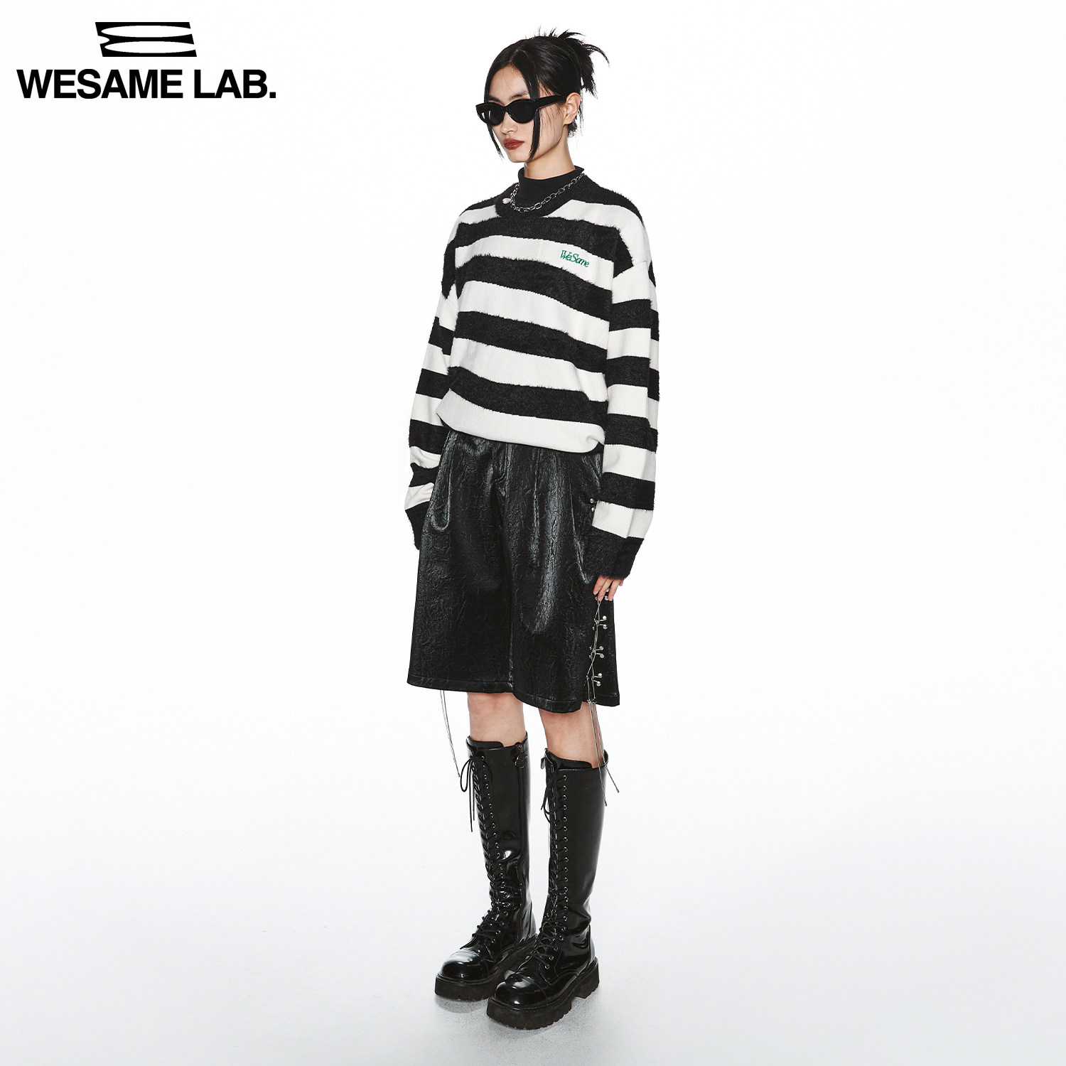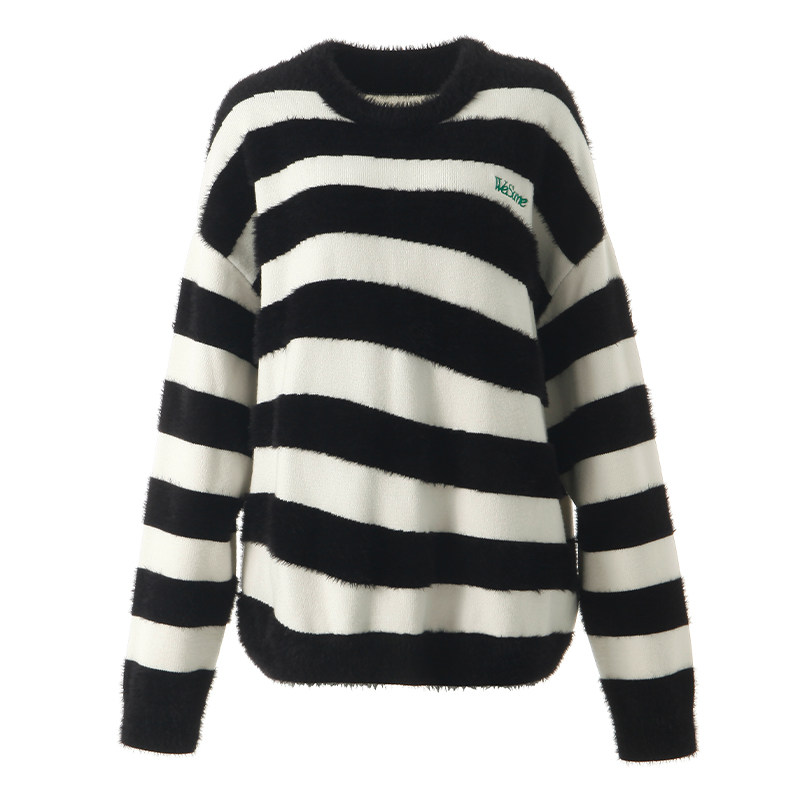 WESAME LAB original design black and white striped sweater women's lazy wind soft waxy thick pullover top
