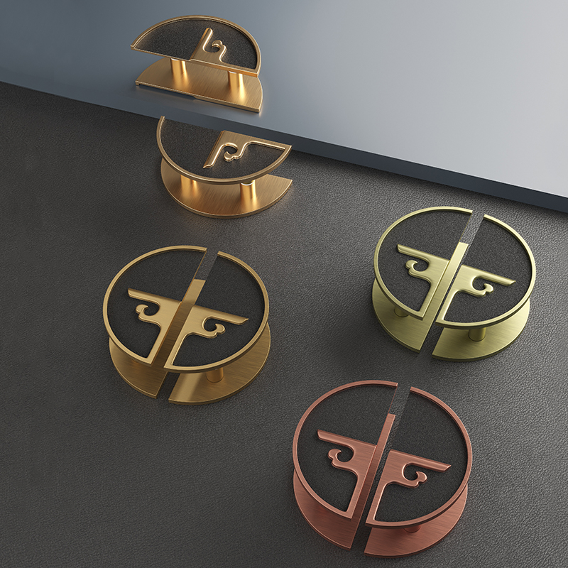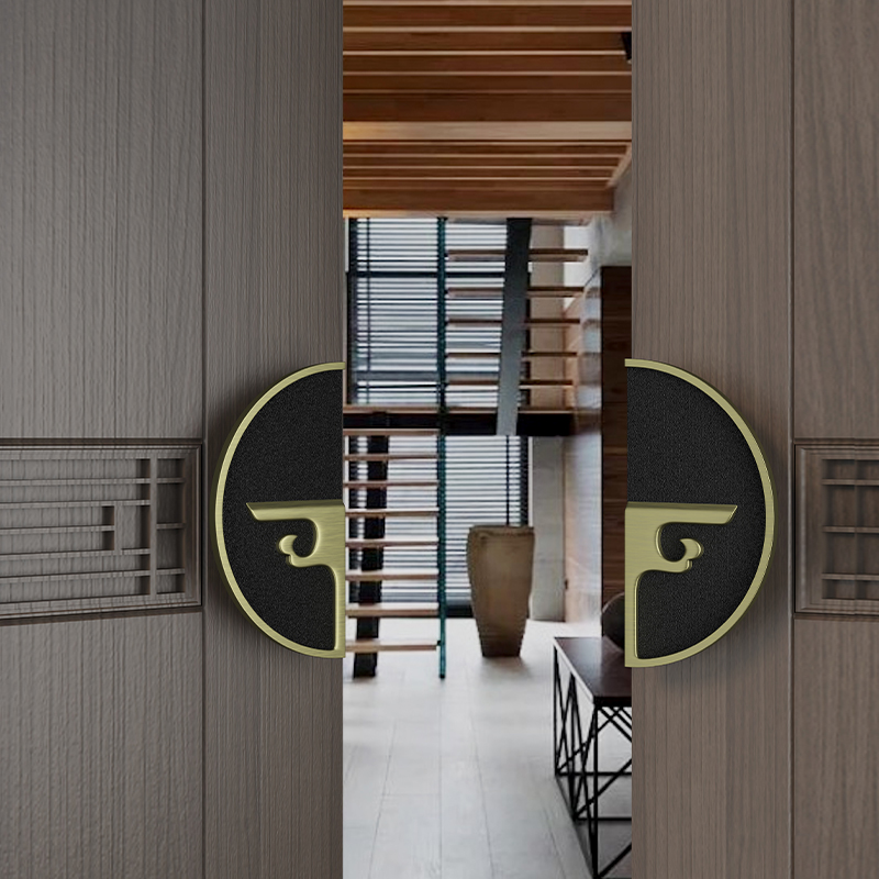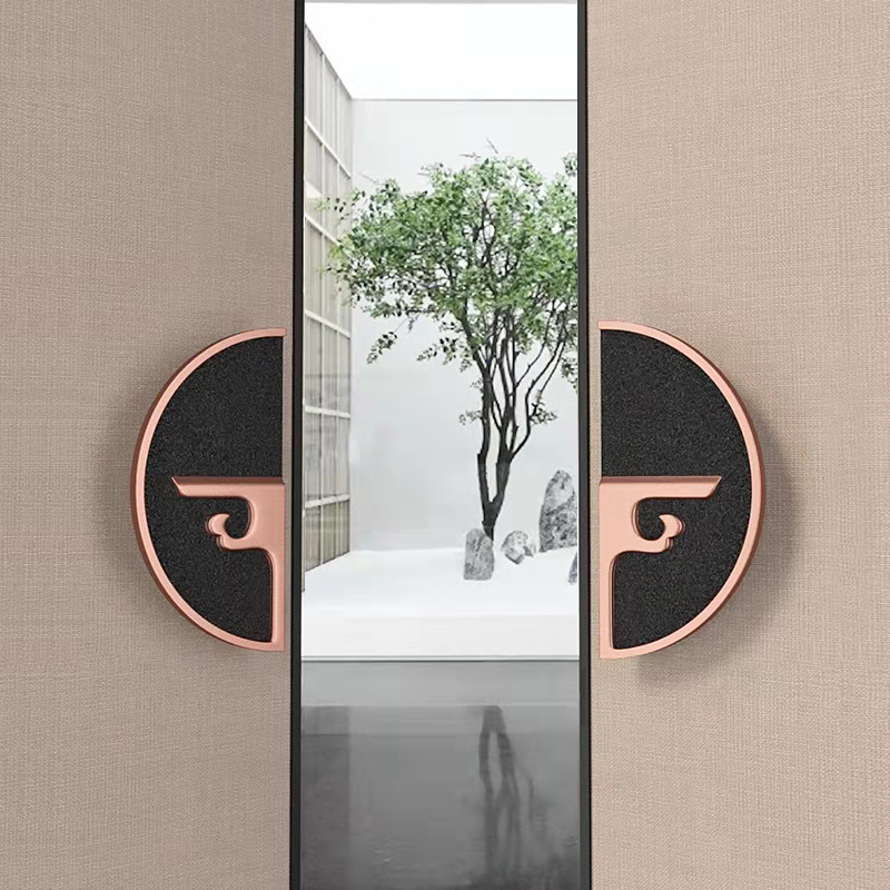 Chinese antique semi-circular door handle framed glass door hotel shop solid wood door handle gold can be customized