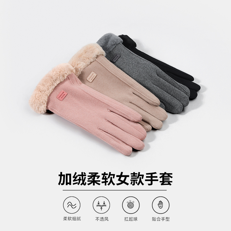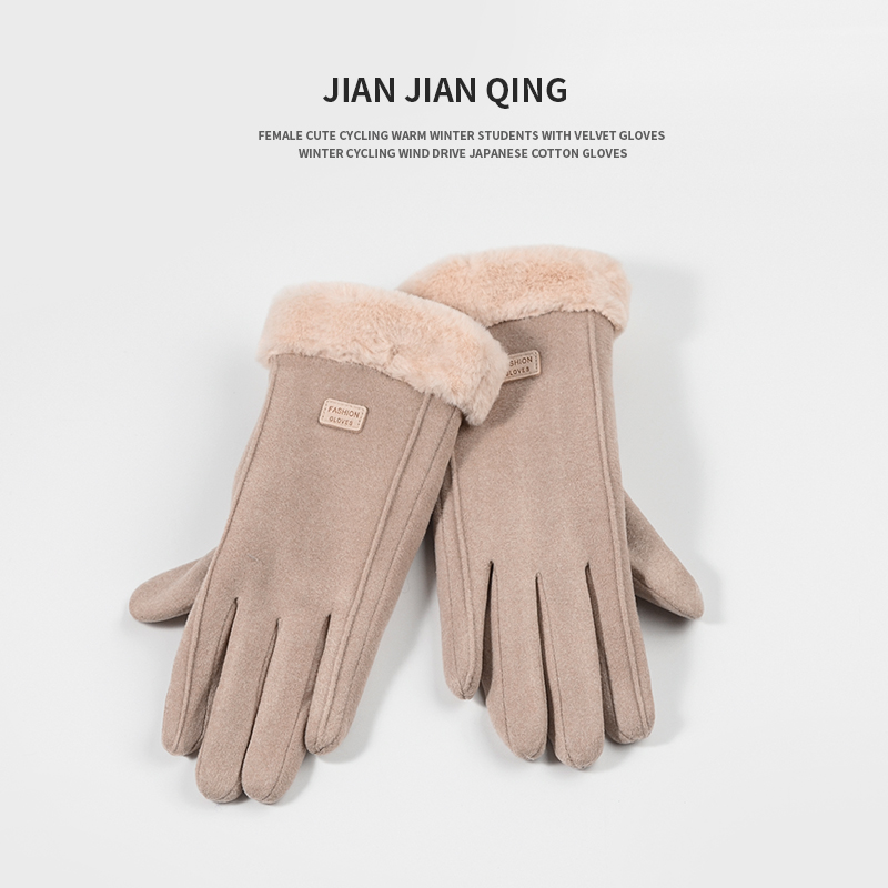 Gradually green gloves winter flat warm woman driving cycling touch screen windproof and cold and thickening bicycle