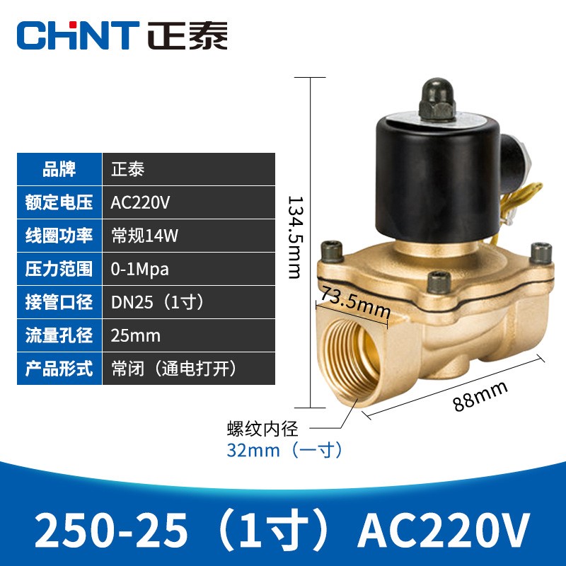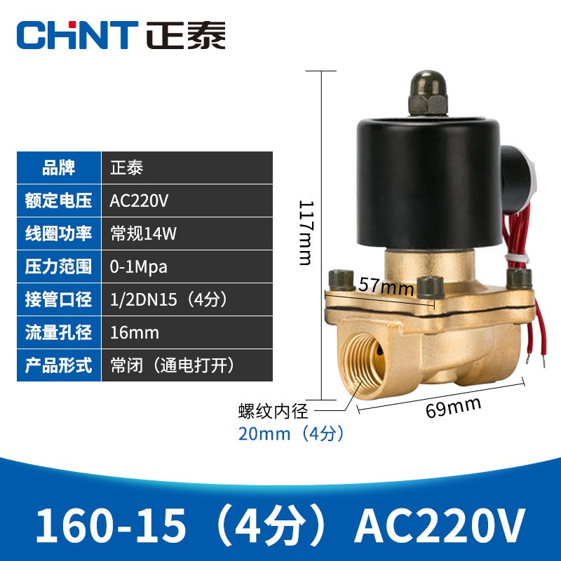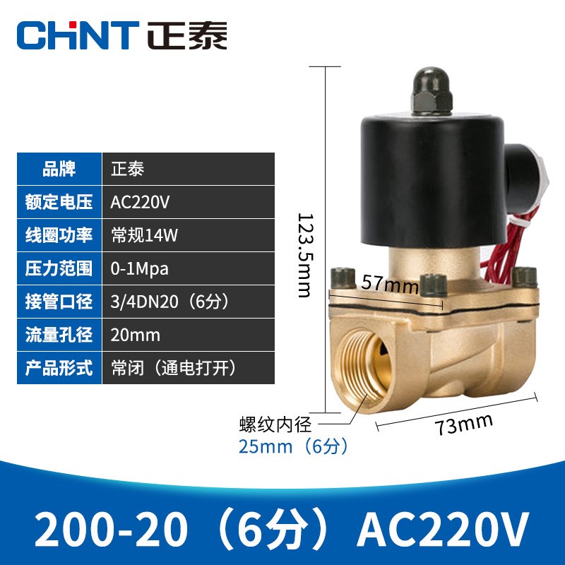Zhengtai NHT solenoid valve normally closed brass air valve 220V24V control valve 2 points 3 points 4 sub-electromagnetic water valve DN20