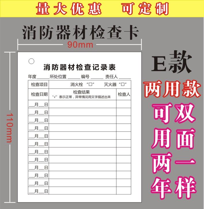 Fire extinguisher Inspection card A fire extinguisher Inspection card B Fire Hydrant Maintenance Point Check Card C Fire Hydrant Fire Extinguisher Dual-use Card D Section Fire Hydrants Fire Extinguisher Dual-use Card E Section
