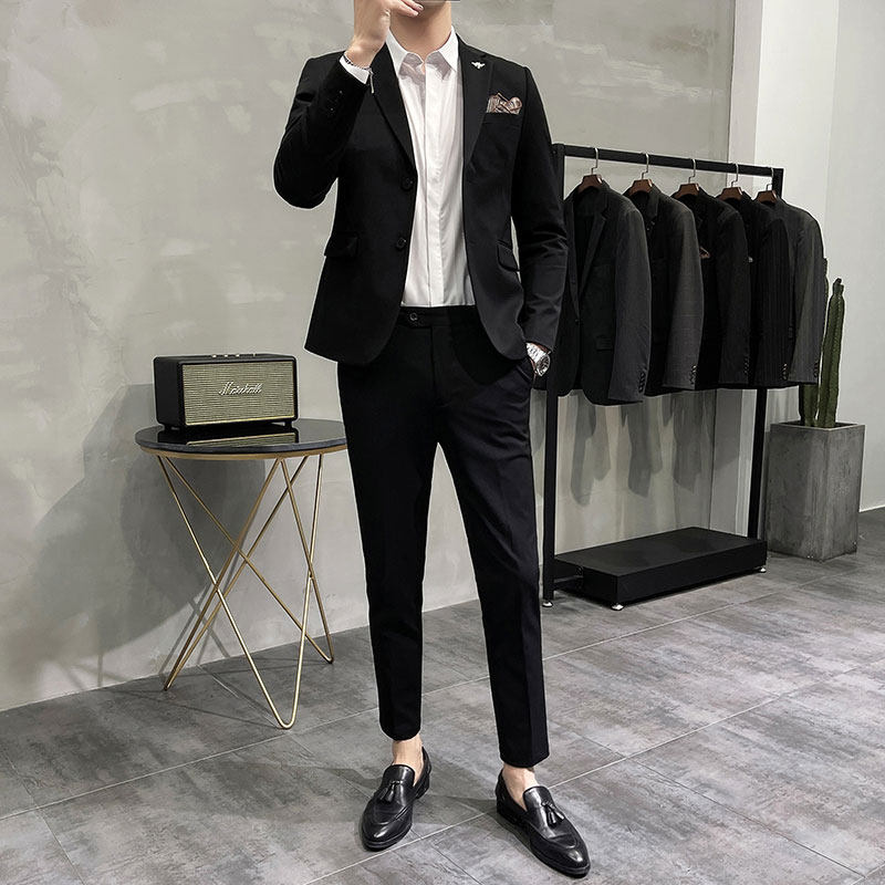 Winter Two Buttons Advanced Senses Fashion Trends Casual Business Suit Men Suit Youth Korean Version Sashimi Street Handsome