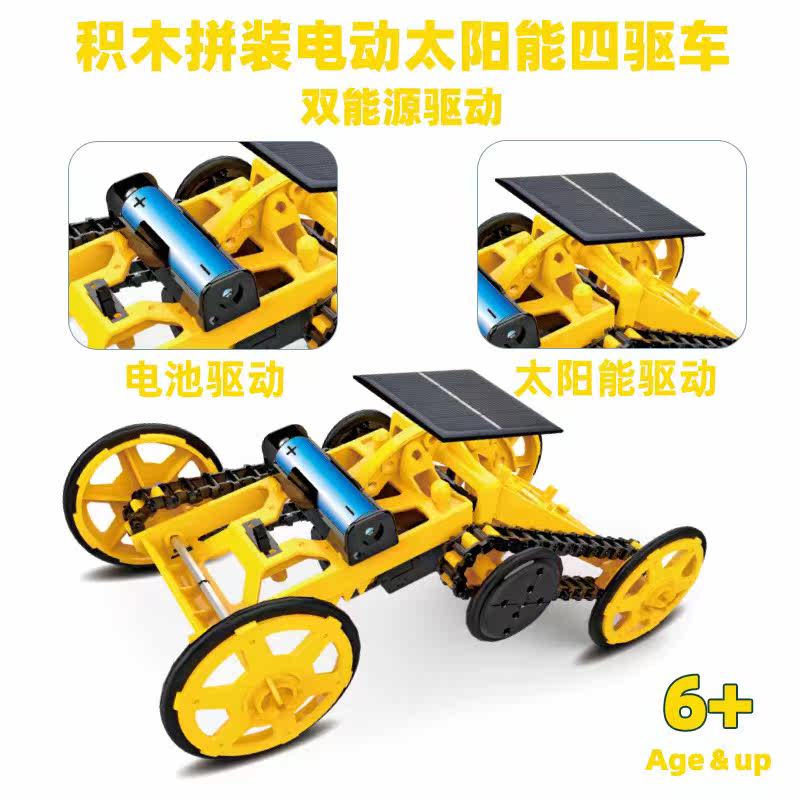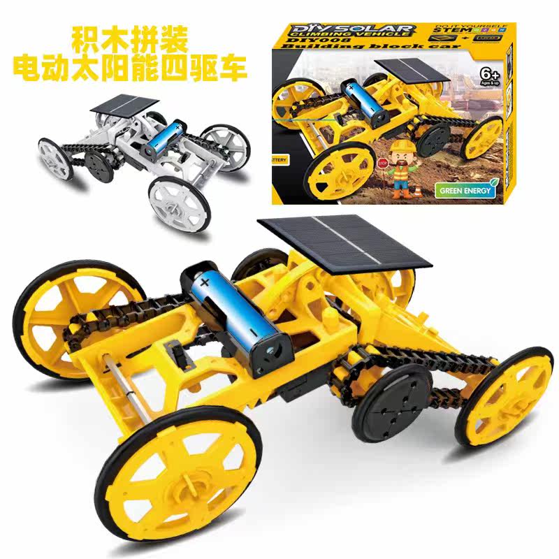 Electric solar assembly building blocks 3-9-year-old Planet four-wheel drive children STEM Section teaching self-loading model toys