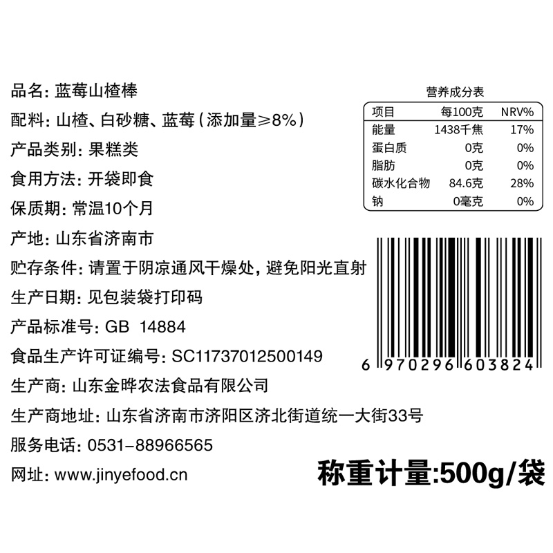Gold Leaf Blueberry Hawthorn Stick Candy 500g Children Baby snacks Calf Blueberry Hawthorn Stick Bulk Independent Pouch