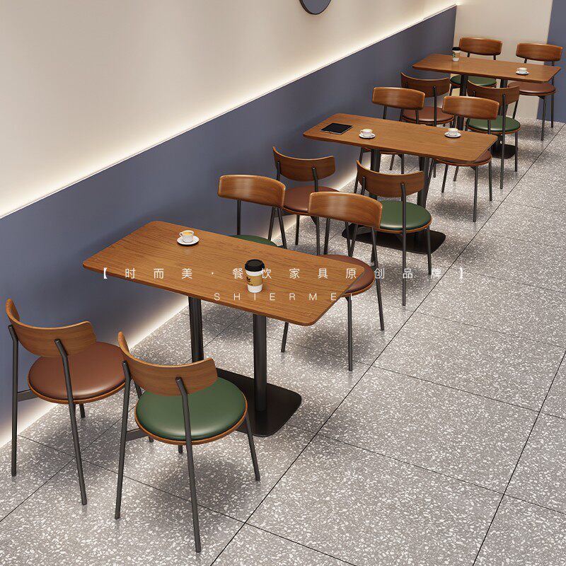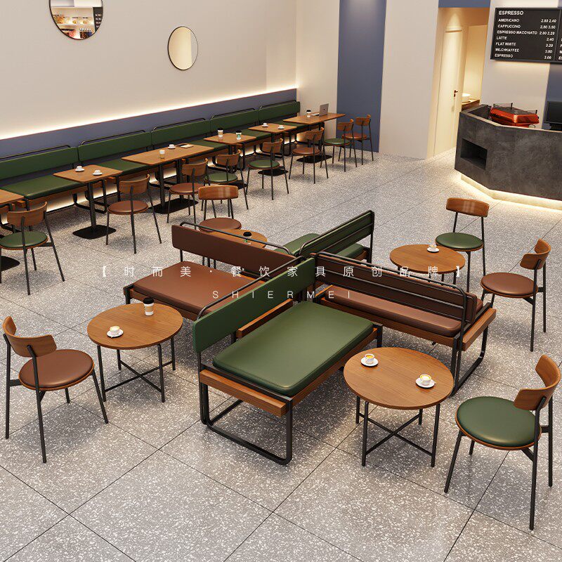 Post-wood leather round table with wooden leather square table sticking wood leather long table with wood leather round tea table brown iron chair (wood backrest) green iron chair (wood backrest) brown solid wood chair green solid wood chair brown iron chair seat green iron chair card