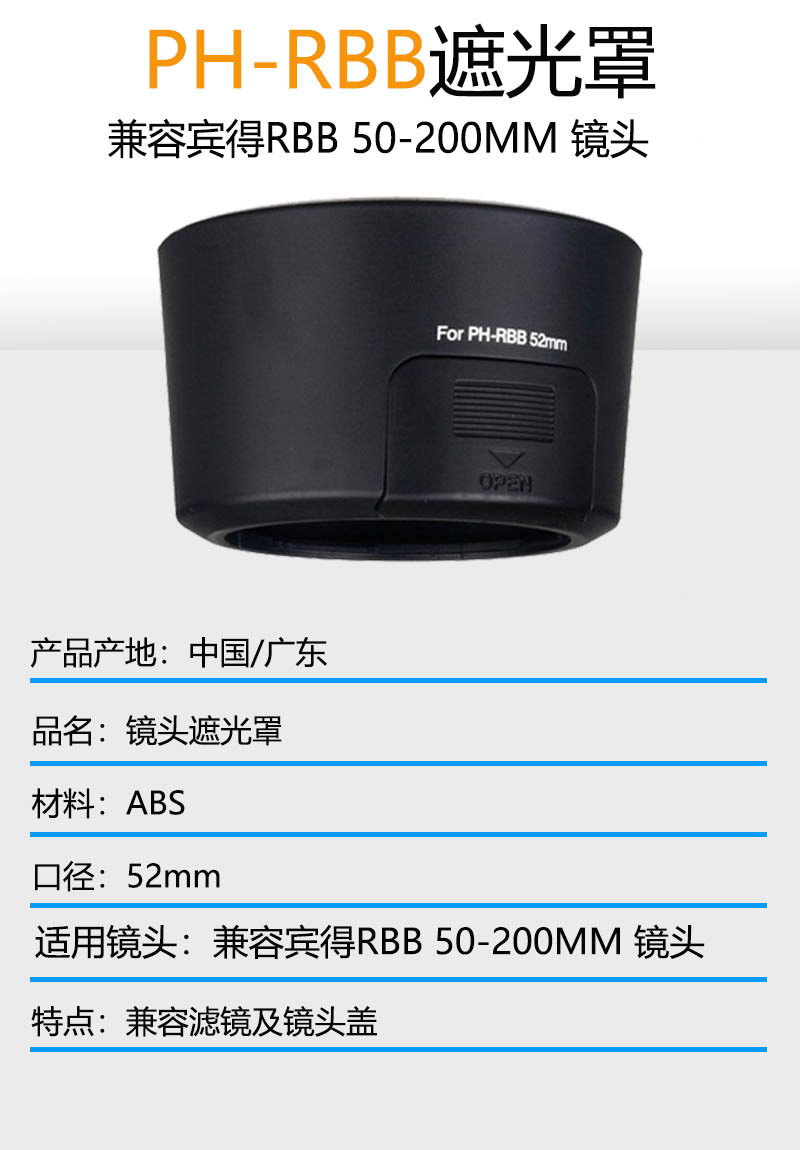 Apply the Pentex PH-RBB 52mm shade compatible with the Bindz RBB 50-200MM lens