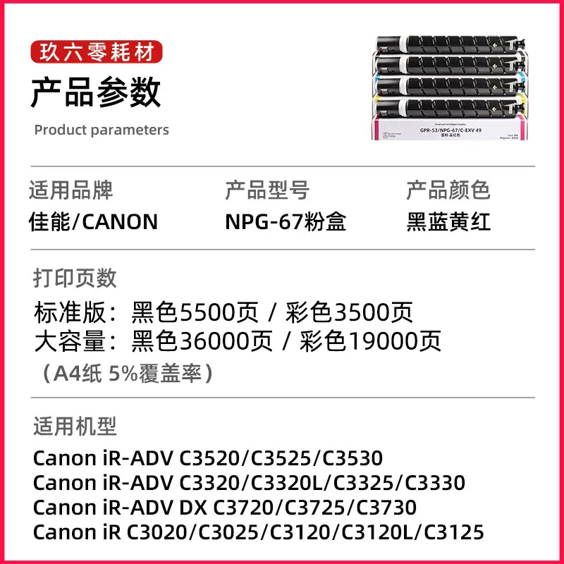 Applicable Canon C3020 powder box npg67 Carbon C3325 C3325 C3221L 3226 selenium drums 3520 3025 3120L 3125 31