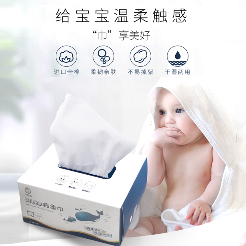 October Angel baby pro-skin cotton soft towel newborn BB special dry and wet double-use paper towel dry towels 100 smoke * 2 boxes