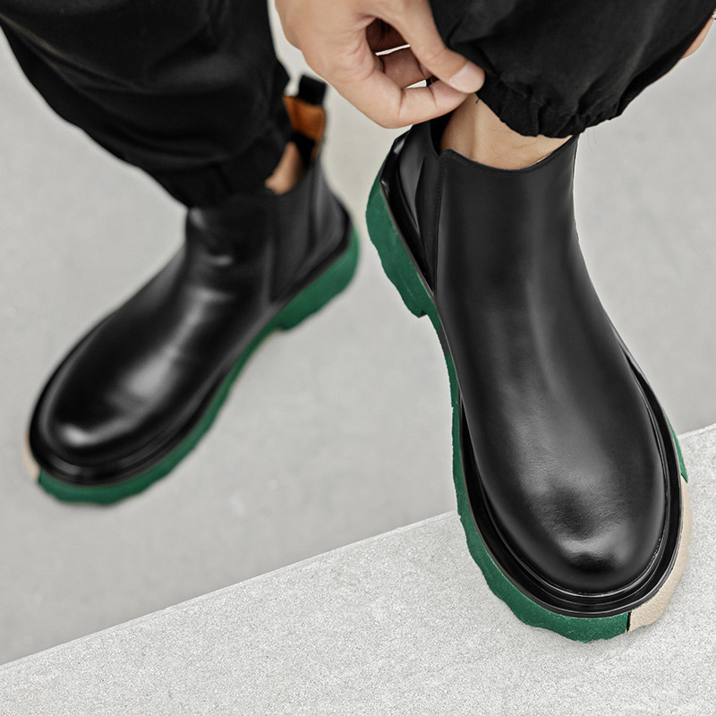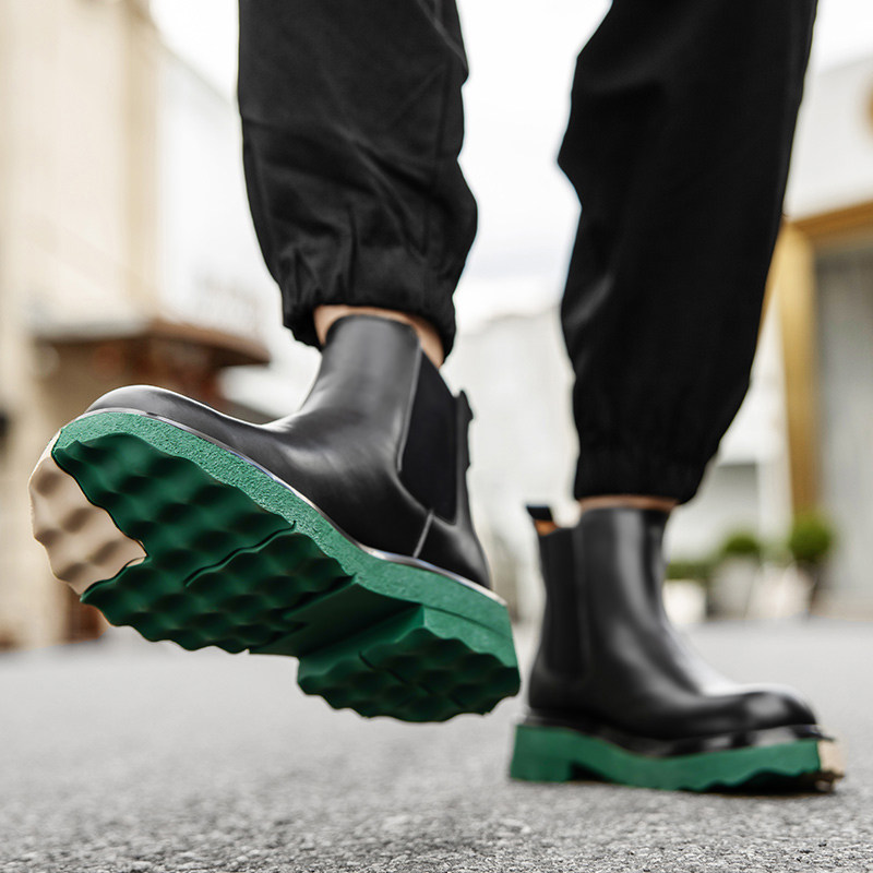 Chelsea boots male Englishsole smoke boots thick bottom increased Martin boots genuine leather and short boots