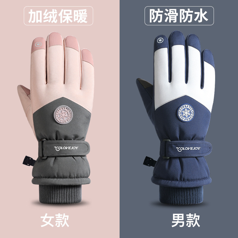 Cycling gloves men and women can touch the screen outdoor sports waterproof non-slip windproof three-layer plus velvet cotton warm couple models