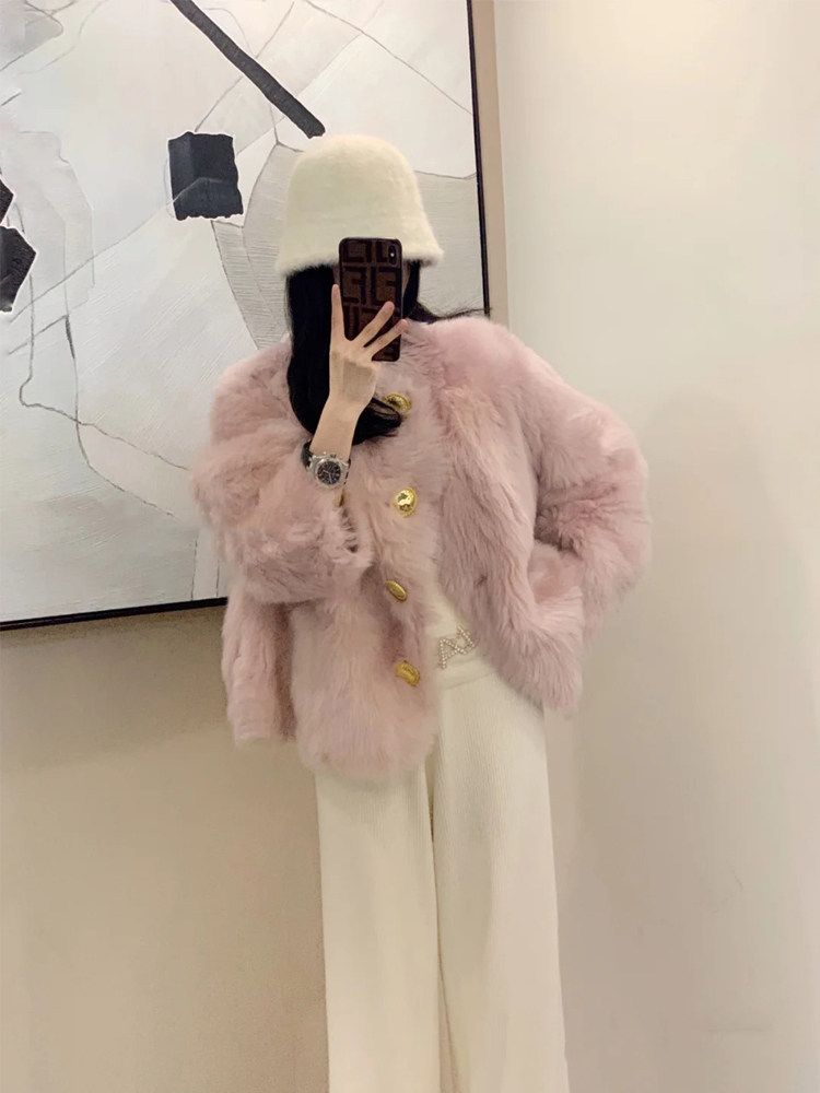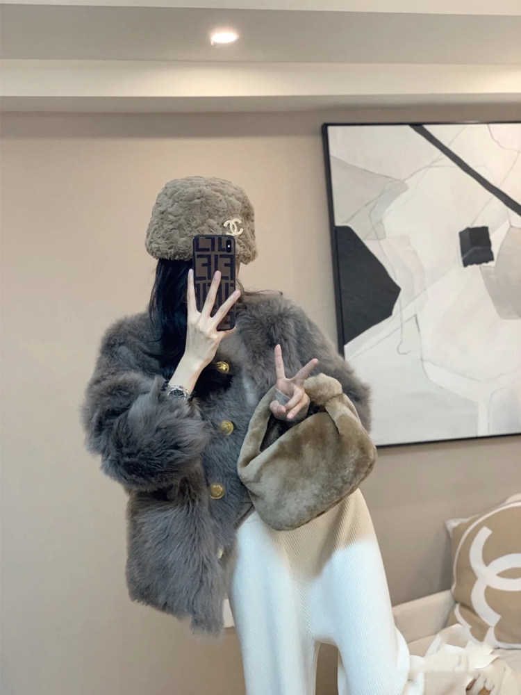 2022 young Fox Fur Fur Straw Coat Female Winter Short leather fur integrated skinny and environmentally friendly fur fashion great clothes