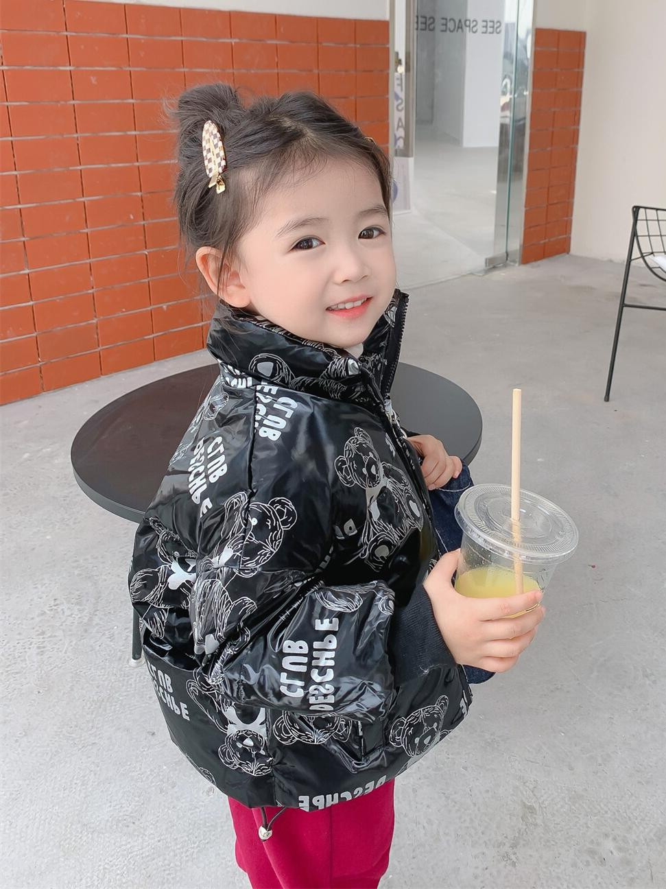 OKAIDI French children's down clothes 90 white duck suede girls winter dress Korean version of graffiti jacket baby thickened blouses