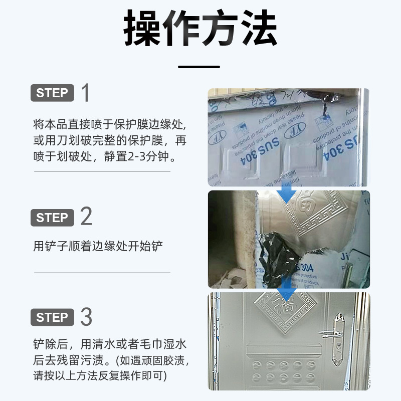 Stainless steel degumming agent degumming agent removal artifact household universal door and window aluminum alloy protective film strong remover