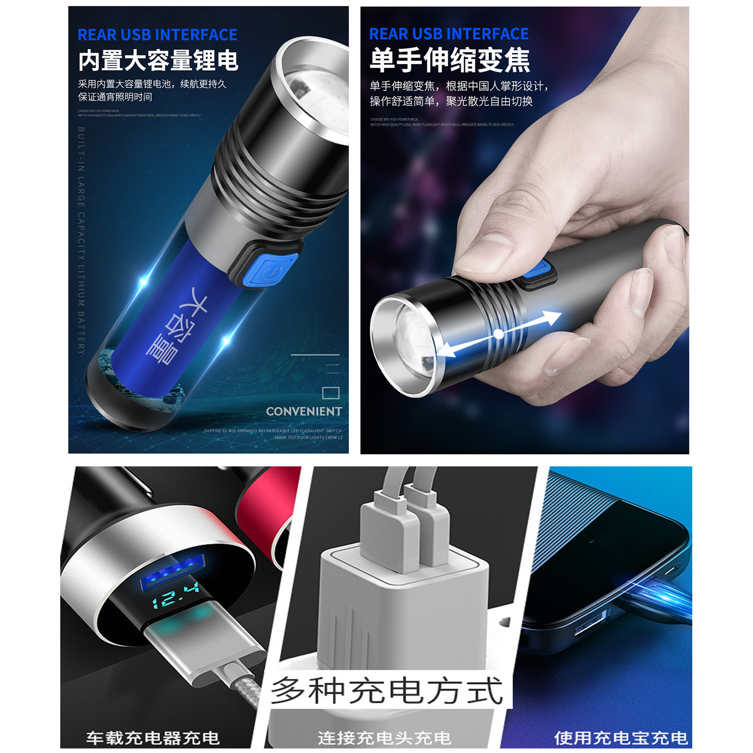 Red, blue and green light three primary color flashlight red light beekeeping detection privacy USB charging zoom school optical experiment