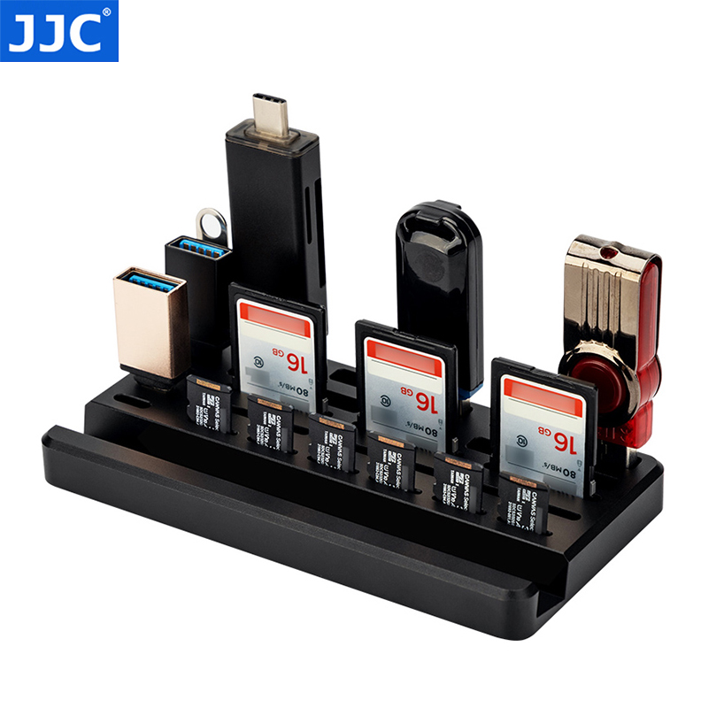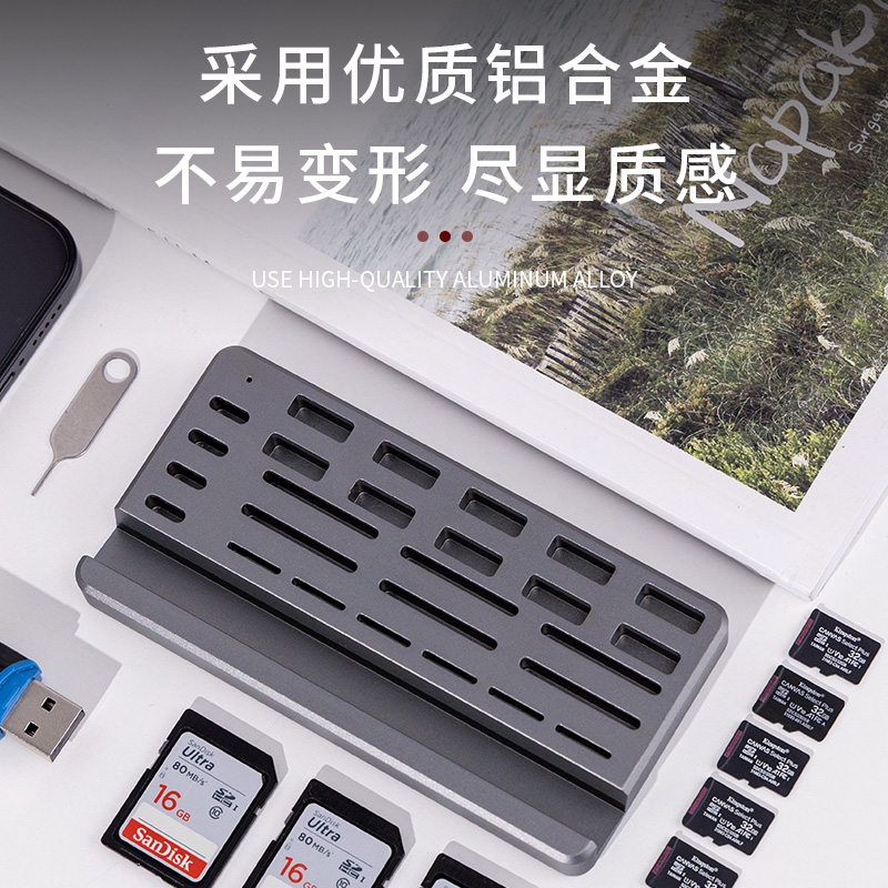 JJC Desktop containing shelf U pan containing deposit box SD card box memory card TF card reader holder creative pendulum mobile phone frame desk finishing digital metal wood