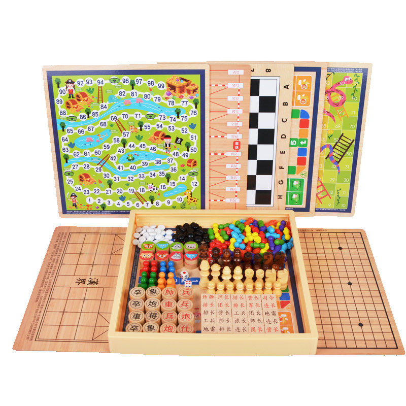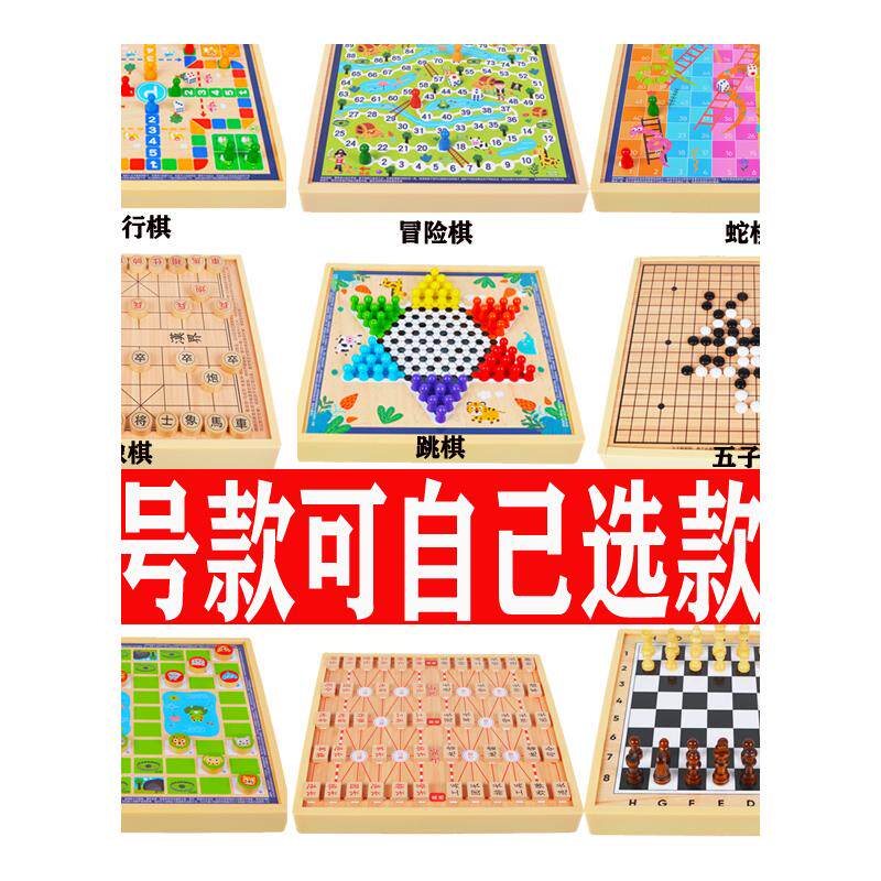 All-in-one checkers, flying chess, backgammon, beast chess game, multi-function chess, children's student educational wooden toys