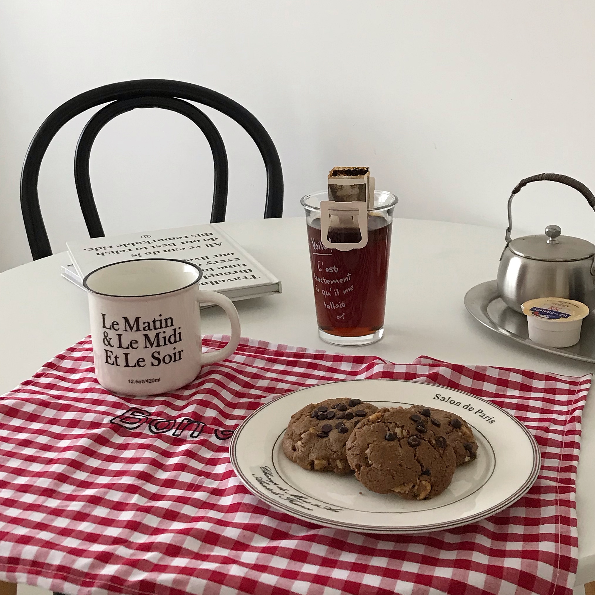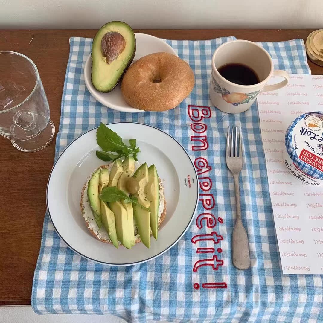 ins wind French plaid style dining cushion embroidered geb small frescoed plaid tablectable cloth background cloth Bonappetit