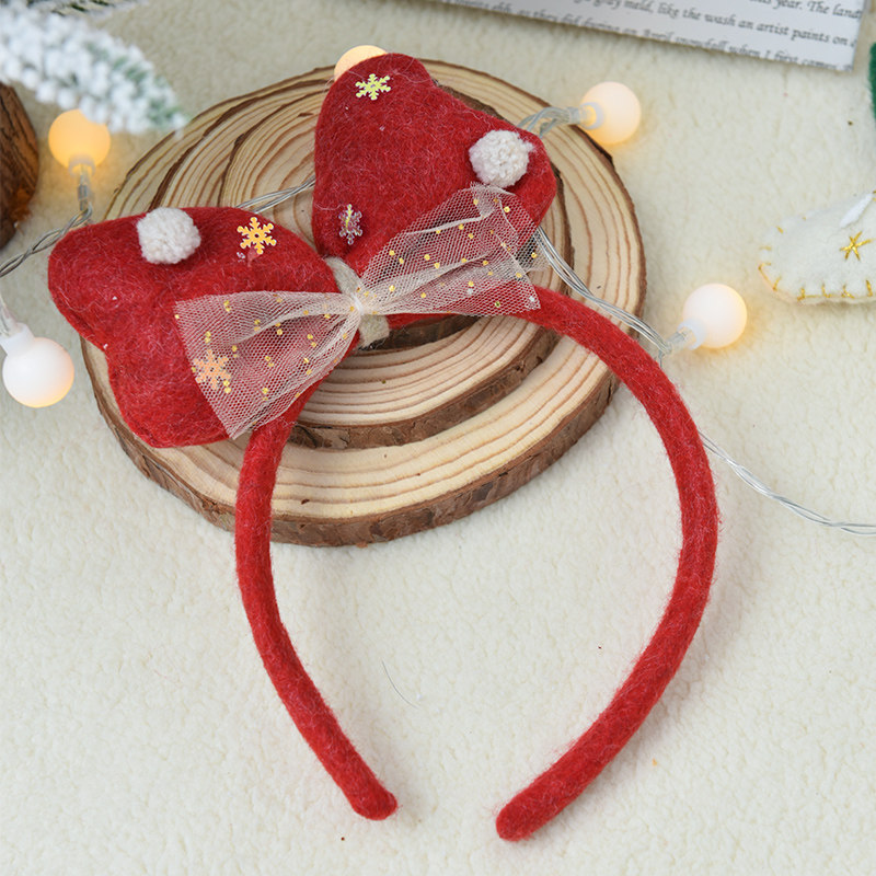 Plush Red Plush Pink Plush Beige Lamb Down GlitterIng Pink Antlers Hoop Red Bow Hair Hoop