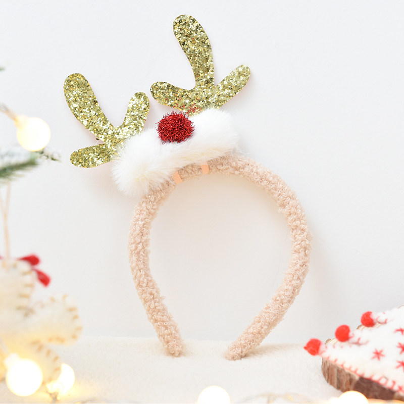 Cartoon plush hair hoop cute antler hair ornament hair hoop lamb hair elk hair clip Christmas festival face wash hair clip girl
