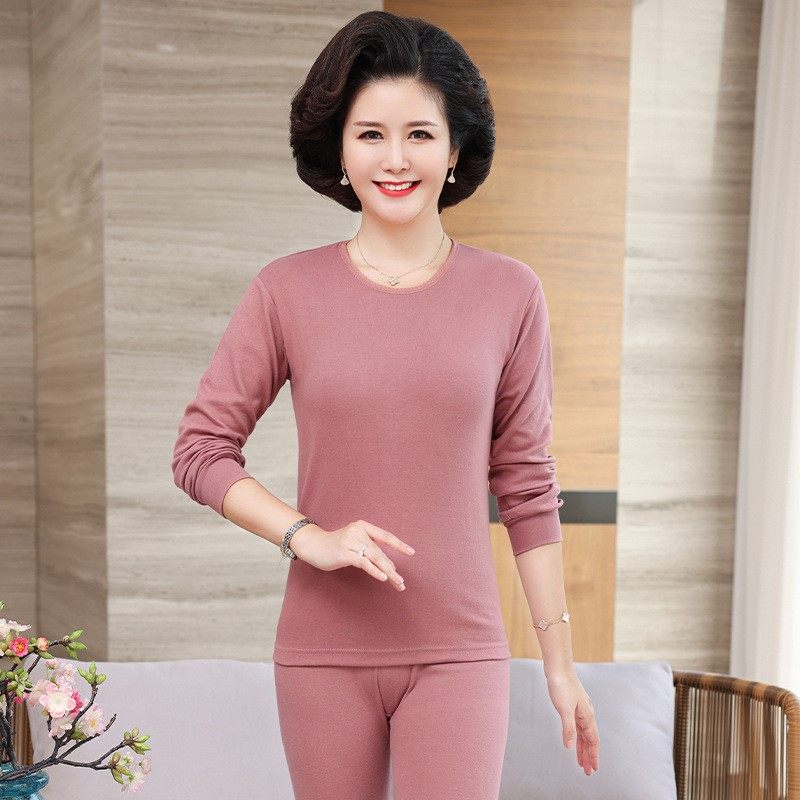 Autumn Clothes Woman Pure Cotton Suit Mid-Aged Fever Clothes Mother Cotton Sweatshirt Inside Lap Pure Color Shirt Inner Lap Pants