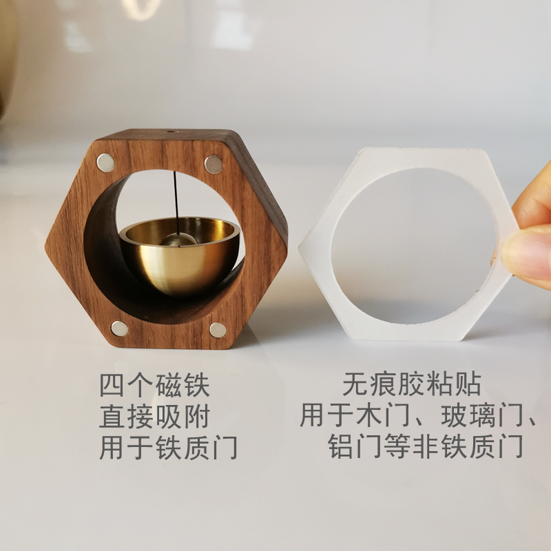 Doba Japan Style Amines Wind Bells Solid Wood Pure Copper Bell Clang Magnetic Attraction Doorbell Fridge Sticker Door Reminder Desktop On-board Wind Bells