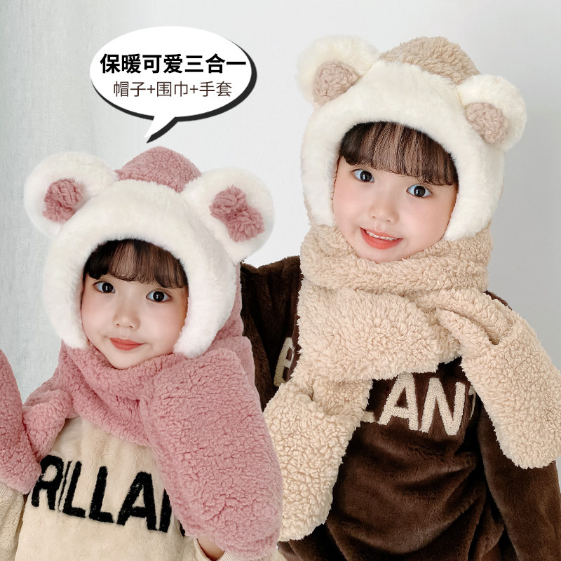 Hat winter women scarf one hat children scarf gloves baby cute plush foreign fashion warm ear protection hat