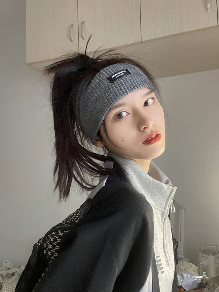Sport knit hair with women autumn and winter outside cool streets wide edge fashion wide hair line grey everyday extra-winter hair stirrup