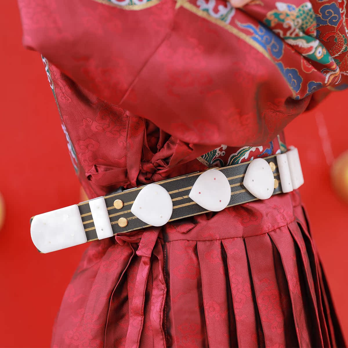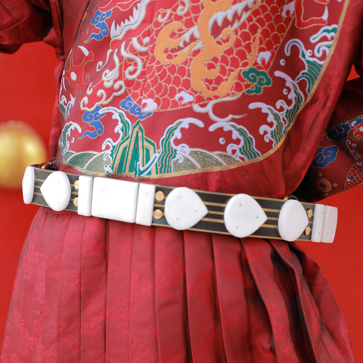 Mindy Han white jade leather with ursuit alley restoring flying fish suit round neckline gown accessories Mindai hanfu handmade belt