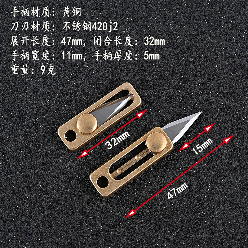 Brass mini knife sharp dismantling courier knife portable edc keychain pendant pocket push and pull out of the box knife
