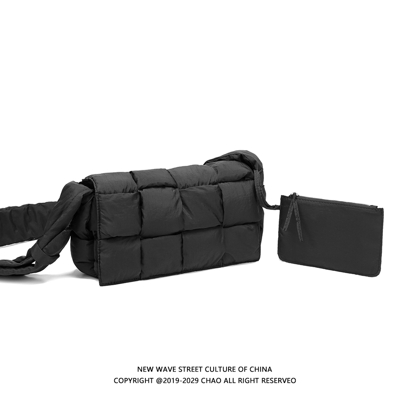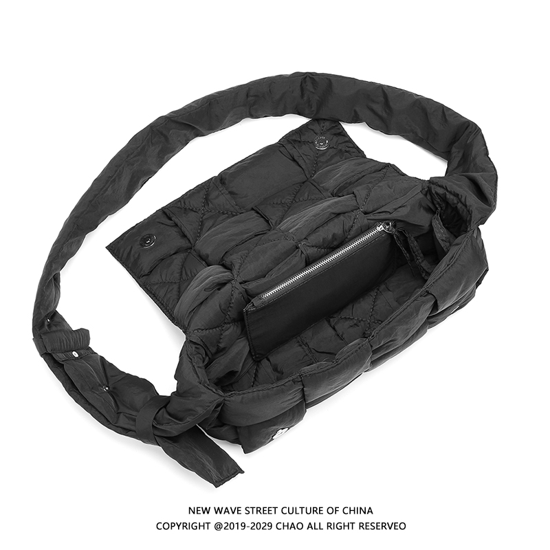 Tide play bag bag space cotton sponge down bag bag men 2022 new fall/winter woven pillow bag tide brand cross-body bag