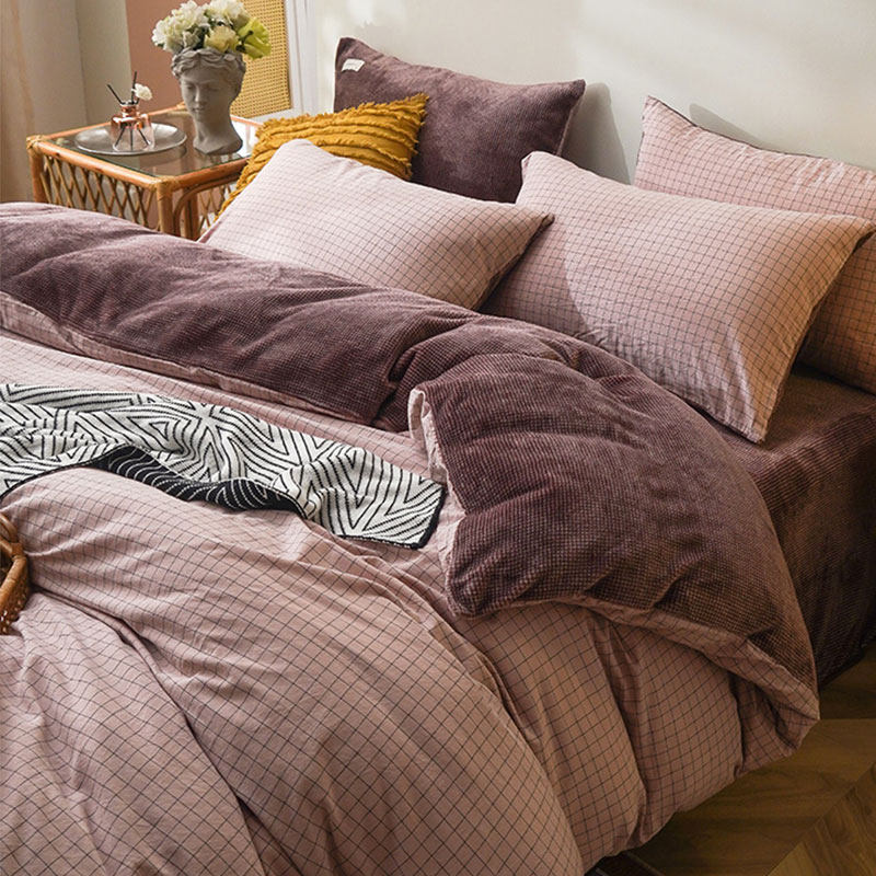 Thickened cotton plus four piece A pure cotton B cotton cream bed bedding is set up with plus-wool bed three piece set
