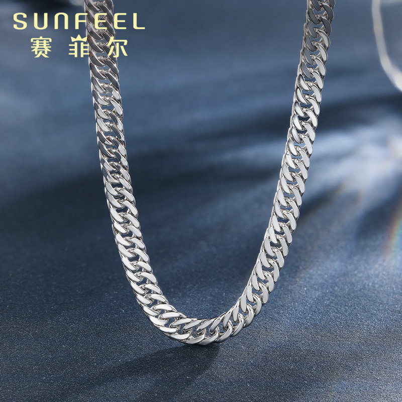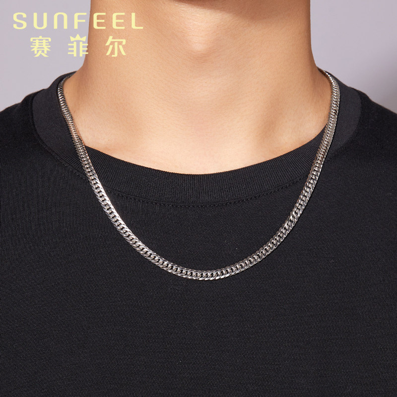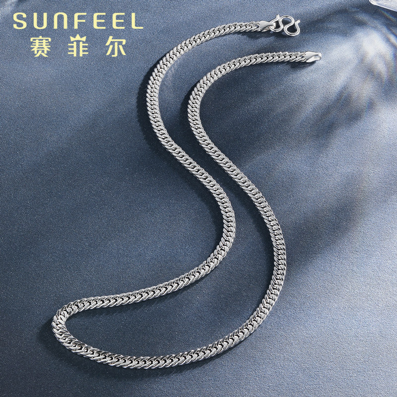Saifeier silver necklace silver necklace 925 silver necklace men's geometric necklace atmospheric double ring necklace for boyfriend