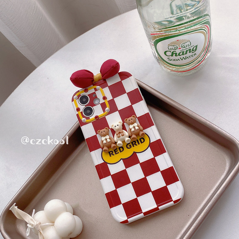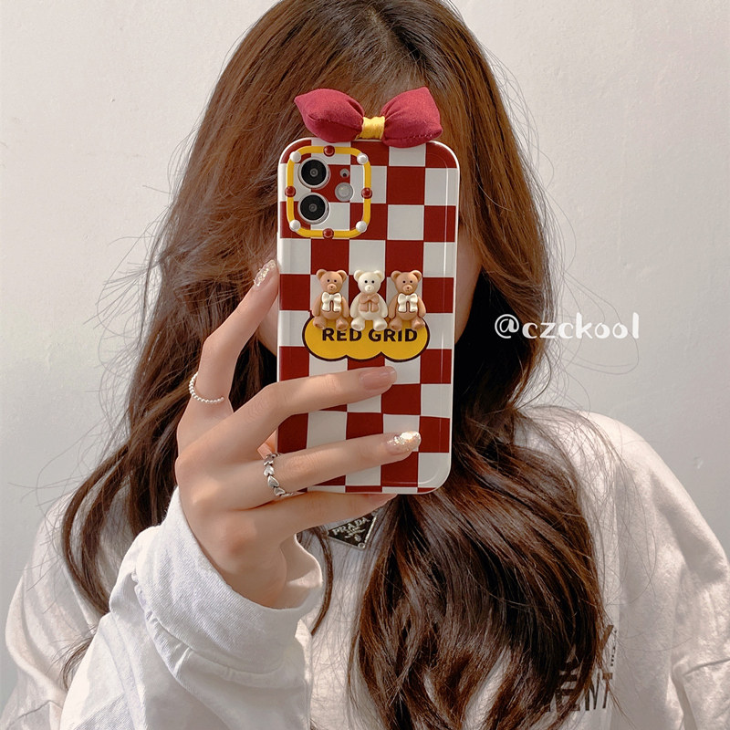 Bow Apple 13Promax mobile phone protective case 12 bear iPhone11 female suitable for three-dimensional bear autumn and winter new