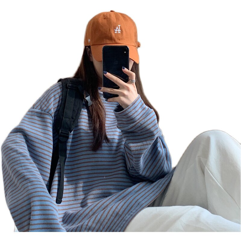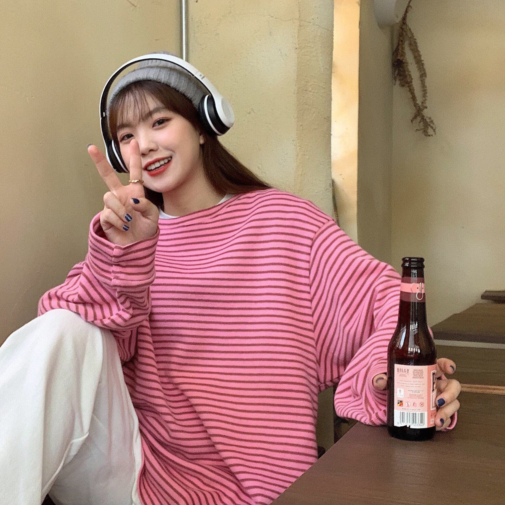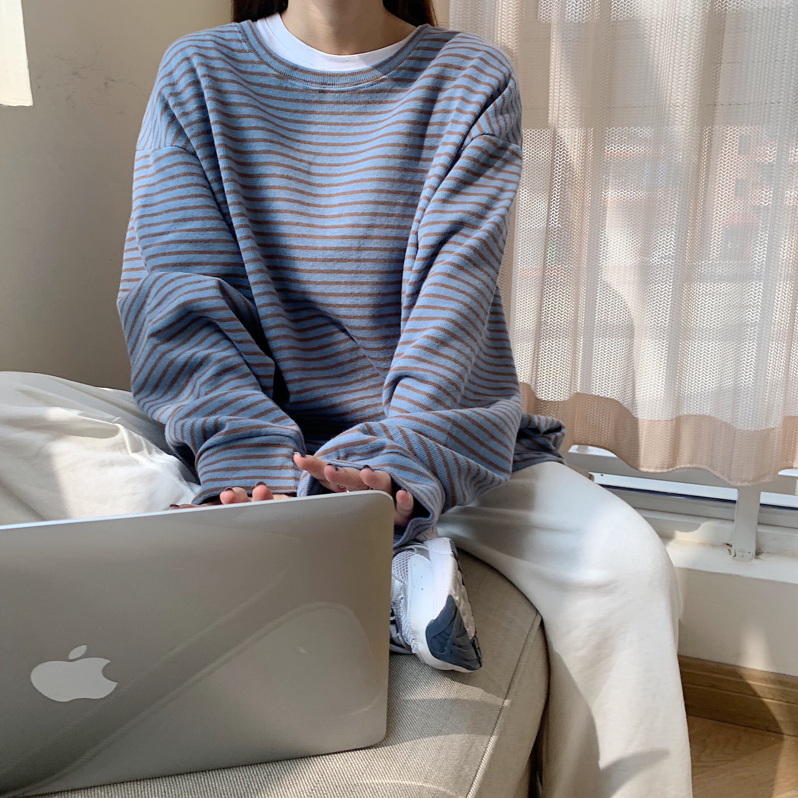 Japan's SLY THOM sweet and cool girl refreshing and handsome wild striped loose lazy boyfriend wind long-sleeved T