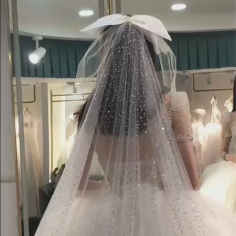 Chaebol giveinn ~ upscale nail drilling bridal wedding brigade patina with accessories long version head yarn playful and reduced-age butterfly knot headwear